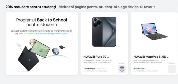 - Studenții au reduceri de 20% la o selecţie de produse Huawei