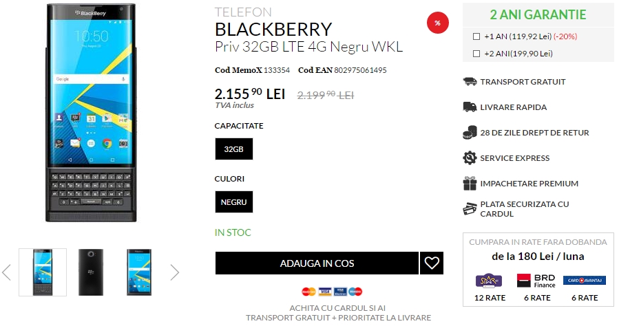 La sfârșitul lunii octombrie 2015, cei de la QuickMobile anunțau și startul unui program de precomandă pentru smartphone-ul BlackBerry Priv - dispozitiv cu Android și tastatură fizică qwerty de tip slide. Acest produs costa la acea vreme 3.499 lei, iar astăzi la aproximativ 7 luni după, el poate fi găsit pentru un preț de 2.155 lei prin intermediul aceluiași retailer.