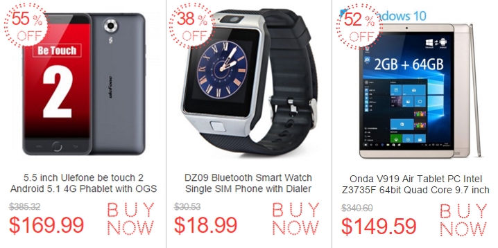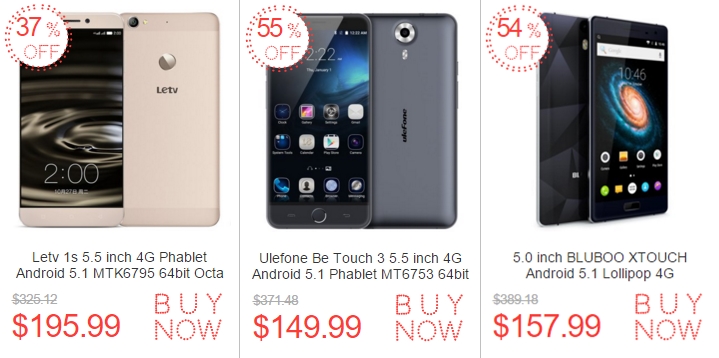 De asemenea, în categoria smartphone le avem și pe Ulefone BeTouch 3, telefon cu display Full HD de 5.5 inch, procesor octa-core, 3 GB RAM și Android 5.1 Lollipop la pachet. EverBuying vinde acest model la un preț de 149.99 dolari în perioada mai sus menționată.