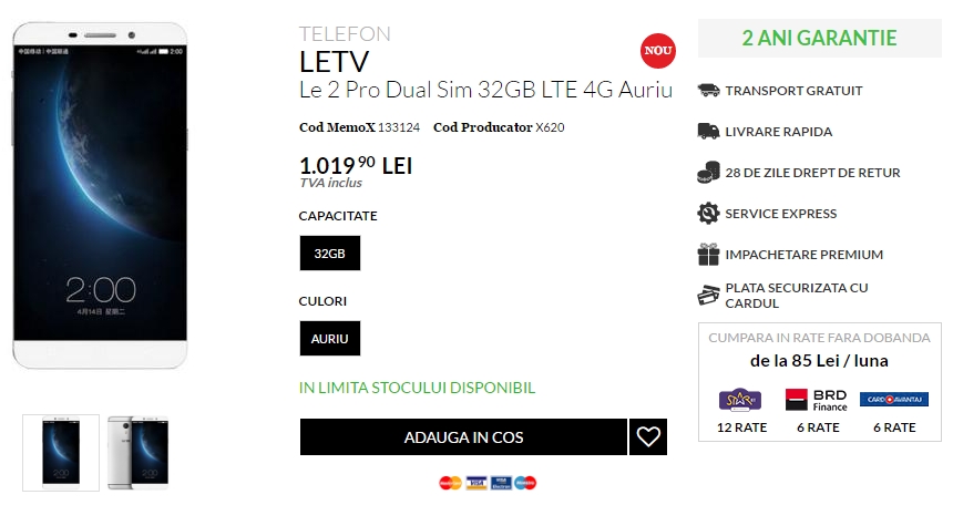 LeEco LE 2 PRO face parte din noul trio de smartphone-uri anunțat de către producătorul chinez LeTV de curând, acesta din urmă fiind cunoscut în Asia datorită platformei video cu același nume. Telefonul despre care vă vorbim astăzi tocmai ce și-a făcut apariția în portofoliul celor de la QuickMobile.ro, pentru moment doar în varianta cu 32 GB de stocare pe auriu.