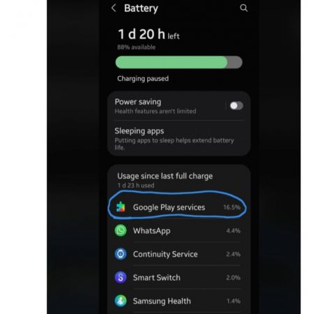 Acel sistem se ocupă de cele mai importante funcții de pe device, precum sincronizarea de aplicații, localizare și procesele din fundal. Se pare că acum, după update, funcționează în mod anormal, cu consum sporit în fundal, solicitând CPU-ul prea des și crescând consumul. Doar Google Play Services singur consumă peste 10% din baterie. Repornirea ceasului mai atenuează problema, dar deseori ea revine.
