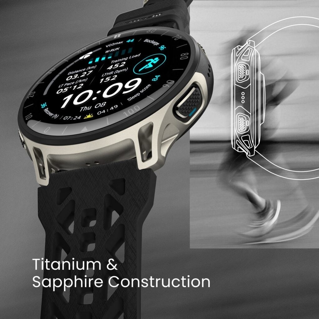 Cheetah 2 Pro impresionează printr-un design ușor, dar rezistent. Carcasa este realizată din titan de grad 5, iar ecranul este protejat de sticlă safir. Display-ul AMOLED de 1.32 inch în diametru oferă rezoluție de 466 x 466 pixeli, rată de refresh de 60Hz și o luminozitate de până la 3000 de nits, ceea ce asigură vizibilitate excelentă chiar și în lumină puternică. Cu o greutate de doar 45.6 grame, ceasul rămâne confortabil inclusiv în timpul antrenamentelor lungi.