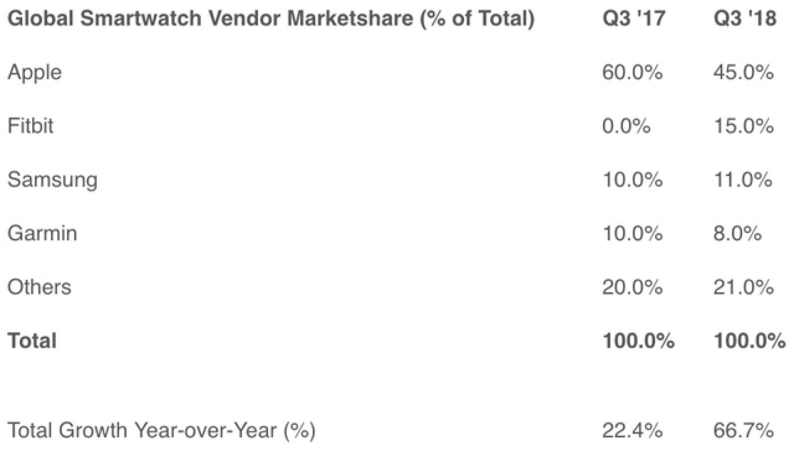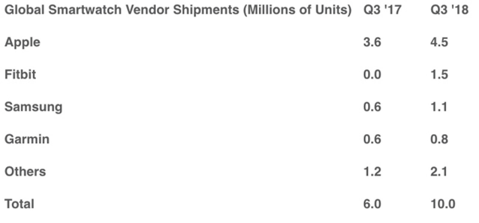 Podiumul este închis de către Samsung care a reușit să vândă la nivel global aproximativ 1.1 milioane de smartwatch-uri. Urmează Garmin iar apoi secțiunea alți producători. De menționat faptul că în acest studiu au fost afișate doar livrările de smartwatch-uri și nu la general pentru zona purtabile acolo unde ar fi apărut și brățările smart și unde Xiaomi avea să apară cu siguranță. Potrivit analiștilor din domeniu, vânzările de smartwatch-uri vor continua să crească.
