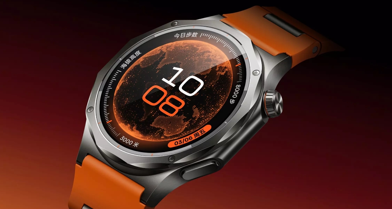 Avem de-a face cu un ceas inteligent fabricat din titan şi care rezistă la coroziune în mod excelent. Cureaua are şi zone metalice inserate în cauciuc. Ecranul său OLED LTPO de 1.5 inch e protejat de sticlă de safir, pe scara Mohs pe la 8+. Oferă luminozitate de 3000 de nits, iar ceasul e cu 16% mai uşor decât predecesorul şi cu 6.4% mai subţire. Cântăreşte 43 de grame şi vine cu o baterie de 646 mAh, fix ca predecesorul.