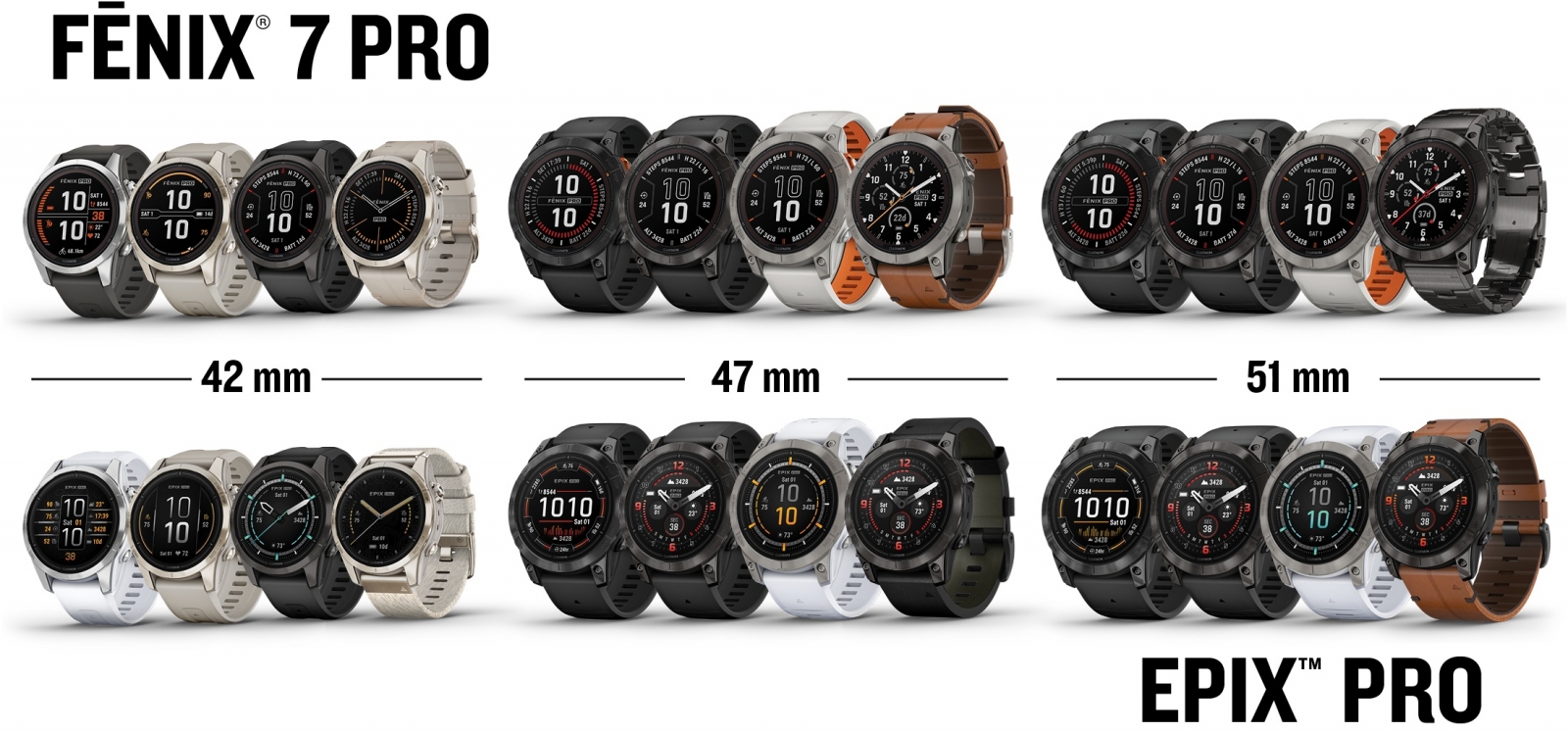 Dacă luăm toate combinațiile pozibile (42, 47 și 51mm) + variantele disponibile, Garmin a lansat un număr total de 27 de smartwatch-uri, din seriile Fenix 7 / 7 Pro și Epix Pro (Gen2). Important de reținut ar fi faptul că dacă dorești un smartwatch premium cu display AMOLED alegi Epix Pro (Gen2), iar dacă vrei încărcare solară și / sau display MIP, alegi un model din seria Fenix 7 Pro.