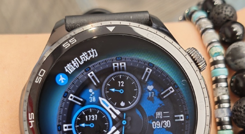 Trecând peste, vedem aici ceasul într-o fotografie clară, probabil varianta de 46mm cu ecran de 1.4 - 1.5 inch și corp metalic, buton crown rotativ și un buton secundar pe dreapta, pentru antrenamente sau shortcut-urile dorite. Are un bezel mai gros în jurul ecranului față de recentele HUAWEI Watch GT 6, iar cureaua pare a fi cea din silicon.