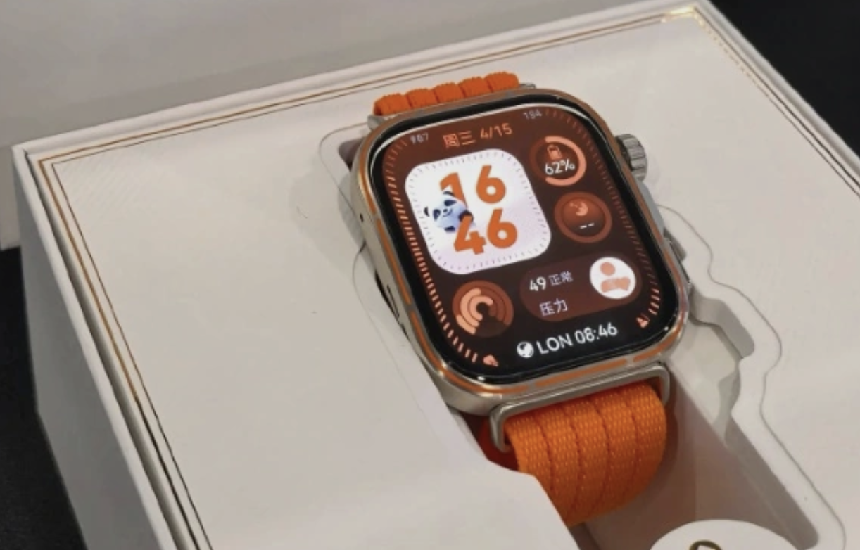Din imagini se observă un ecran mai aproape de marginea carcasei, cu rame vizibil mai înguste decât la Watch Fit 4 Pro. Asta sugerează un raport screen-to-body mai bun și o experiență mai modernă la utilizare, mai ales pentru notificări, sport și widget-uri. Panoul ar fi protejat de sticlă curbată 2.5D, iar muchiile rotunjite îl fac să semene cu un smartwatch premium.