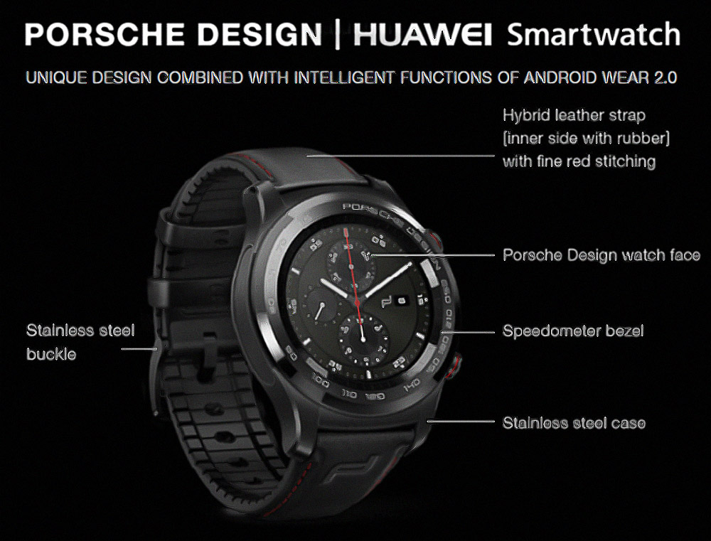 Acest device rulează Android Wear 2.0, are 512 MB RAM şi 4 GB stocare. Ar trebui să vină cu procesor Snapdragon Wear, GPS, barometru, senzor de puls, busola şi accelerometru. Designul acestui produs realizat în colaborare pare a fi inspirat din lumea curselor sau a scaunelor din piele de pe maşinile de curse. Majoritatea watch face-urilor furnizate de Porsche Design pe acest model sunt inspirate de ceasurile analogice, aşa cum era de aşteptat.