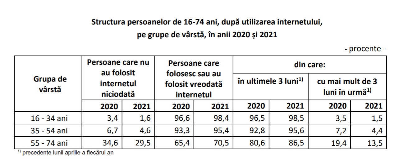 La final de an 2021 ne sosesc cifre cu privire la propagarea conexiunilor Internet în România. Cu această ocazie aflăm că 8 din 10 familii din România au avut acces la Internet de acasă în 2021, în creştere faţă de anul 2020. Numărul persoanelor de peste 55 de ani care au început să folosească Internetul este în creştere cu doar 5%. Alte detalii avem mai jos.
