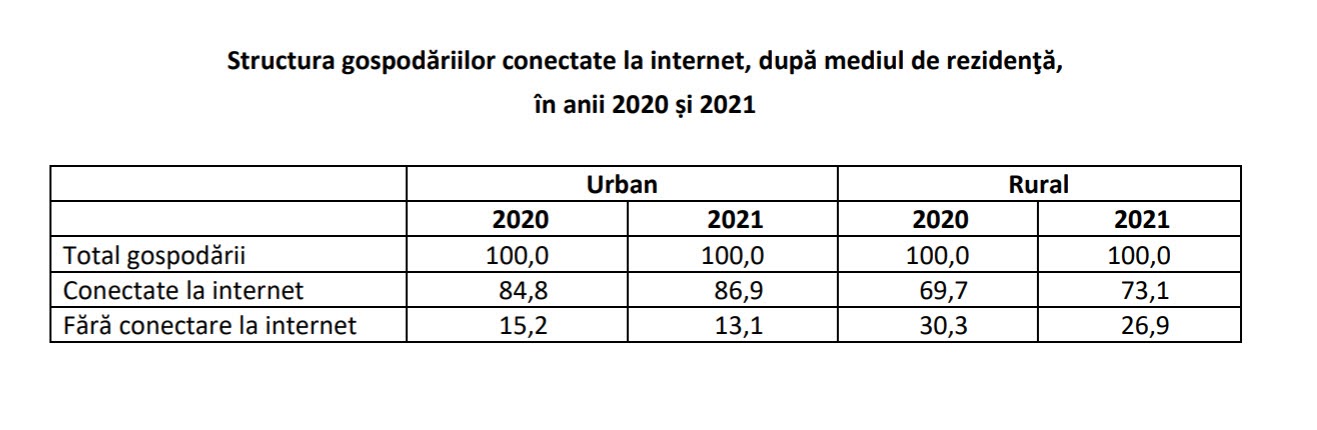 Aflăm că pe parcursul acestui an peste 3 sferturi dintre gospodării, mai precis 80.8% aveau acces la reţeaua de Internet de acasă, în creştere cu 2.6% faţă de anul 2020. Informaţia vine de la Institutul Naţional de Statistică. În cazul mediului urban, 86.9% dintre gospodării au acces la Internet, iar în mediu rural 73.1%. Aici se constată un salt cu 3.4% faţă de anul 2020.