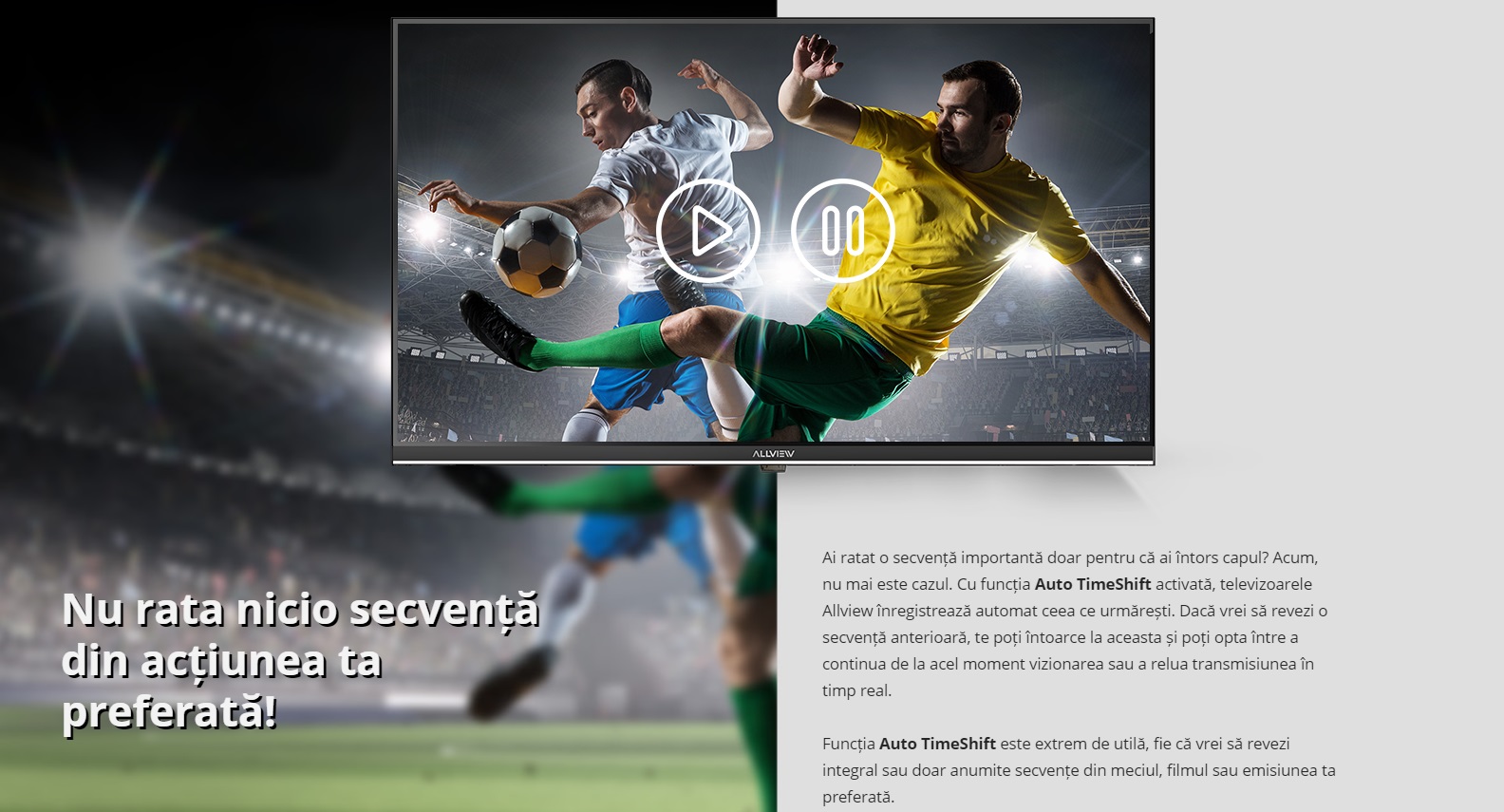 Allview 32ATC6500-H are astfel parte de compatibilitate în orice țară a Uniunii Europene, oferindu-i deschidere spre comercializare în afara țării. De asemenea, noile modele din seria 6500 au funcție Auto TimeShift care permite redarea unei secvențe anterioare prin simpla activare "Play/Pause" și se poate opta pentru a continua din acel moment vizionarea sau pentru a relua transmisiunea în timp real.