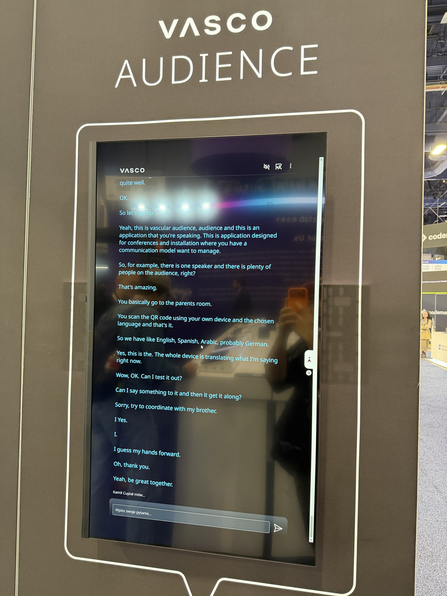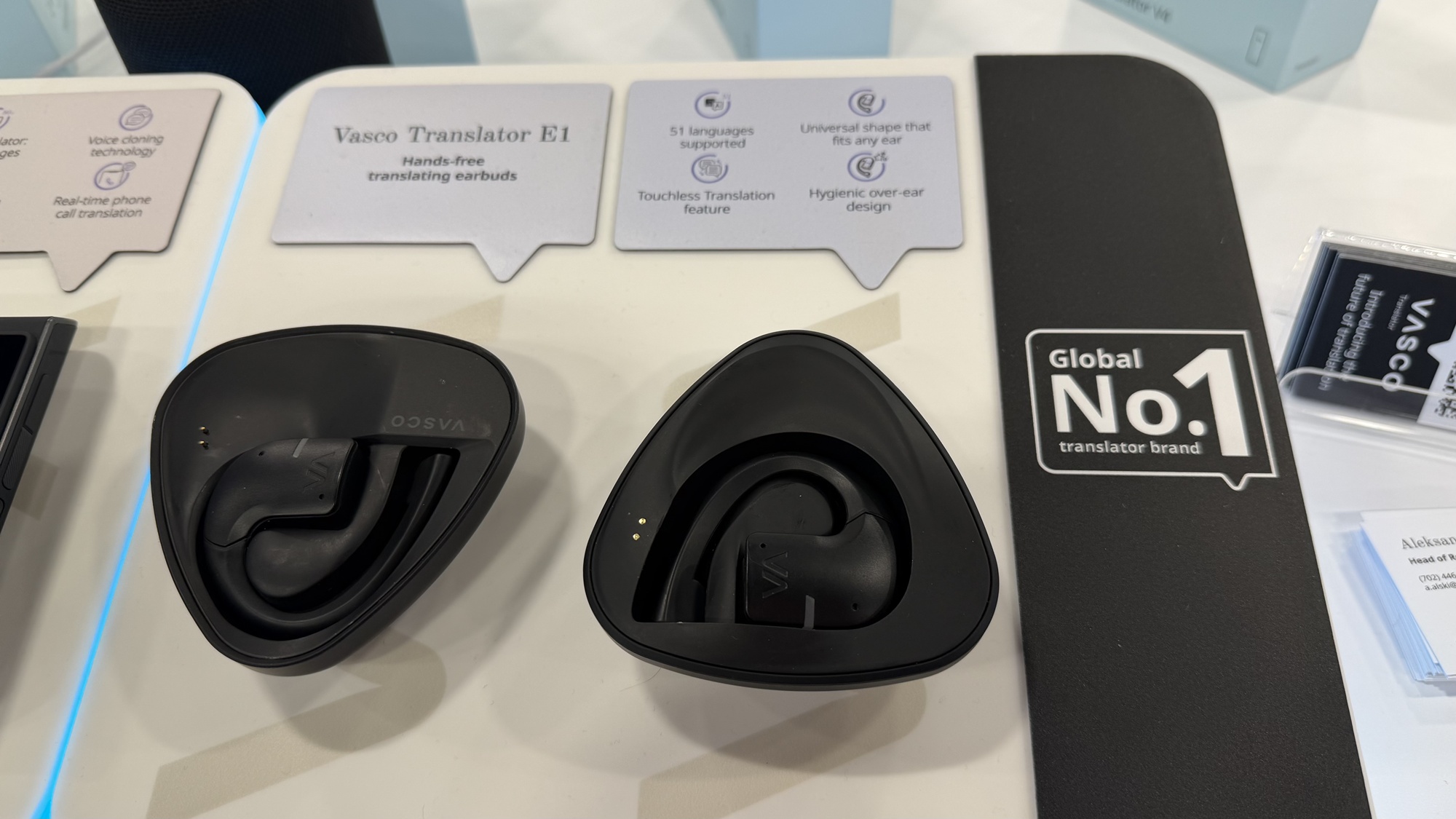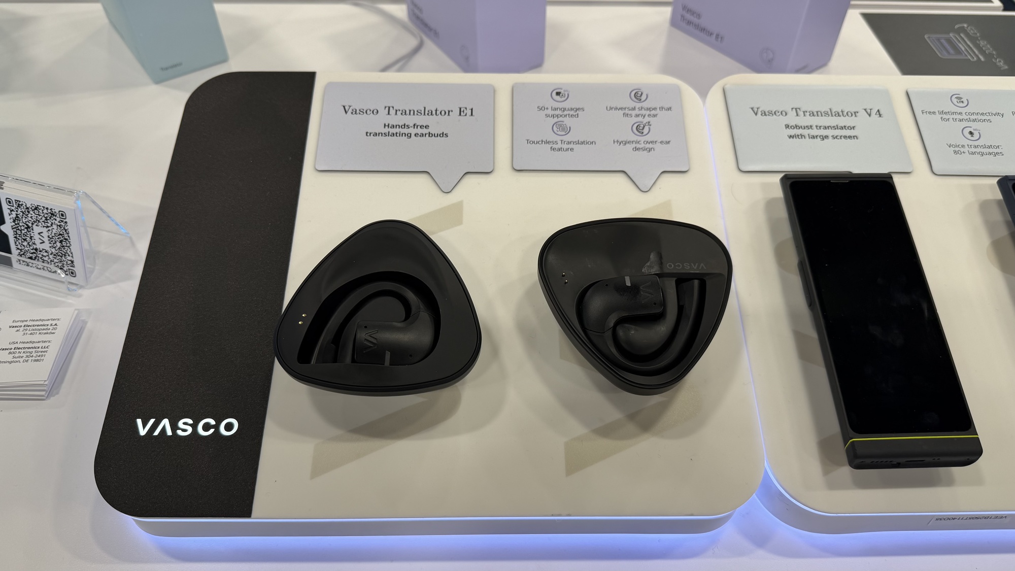 Am văzut la stand şi Vasco Translator E1, o pereche de căşti care traduce în 51 de limbi. E o practic un earpiece de pus pe ureche, care traduce totul direct. Plus o soluţie pentru camerele de conferinţe cu public numeros, despre care aflaţi la final de clip.