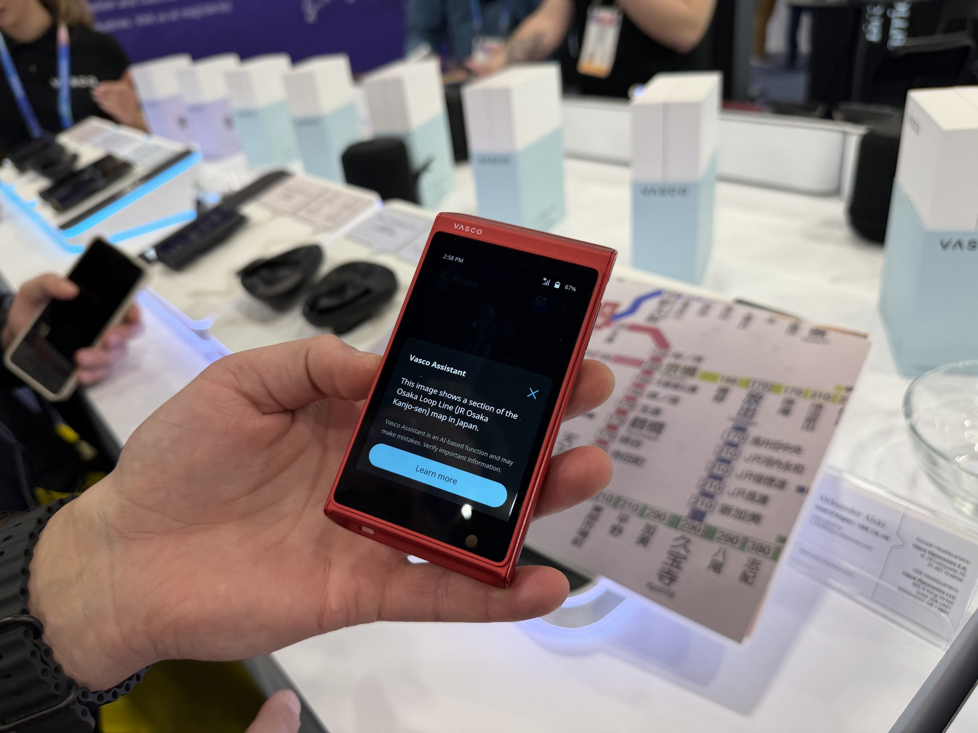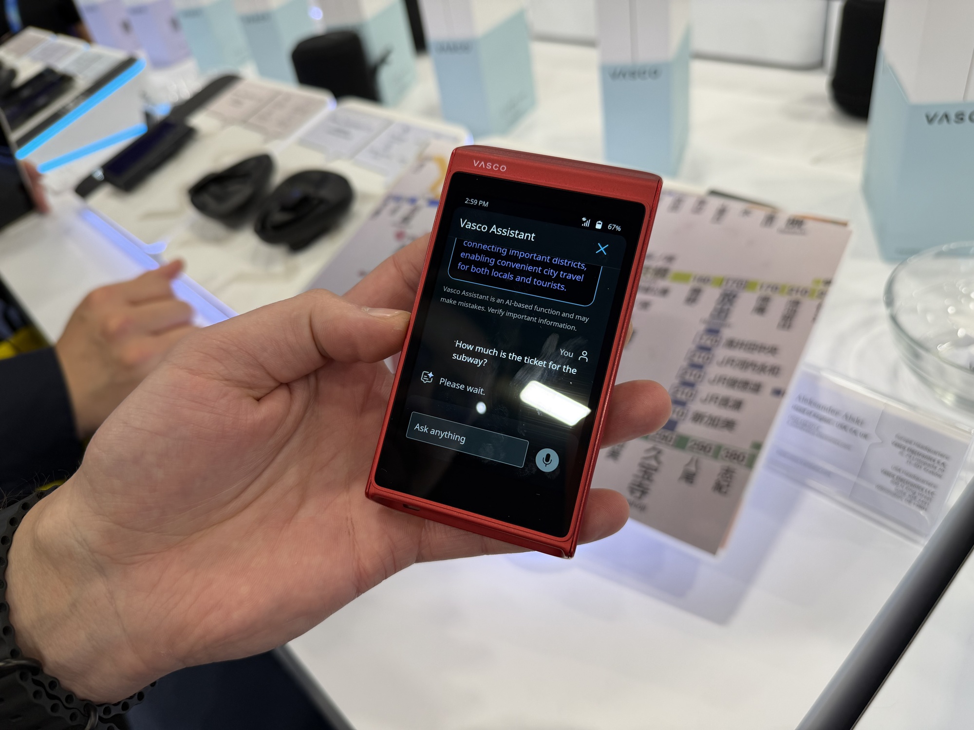 Vasco Assistant este o soluţie complet nouă a celor de la Vasco, care poate analiza imagini, obiecte, contexte din jur, folosind AI. Poţi să îţi introduci şi mailul pe acest gadget şi vei primi transcriptul unei conversaţii complete cu o persoană. Include şi un fel de Duolingo, care te învaţă cu lecţii facile zeci de limbi. Atenție, are şi filtru de limbaj vulgar, reducerea zgomotului de fundal şi selectarea vitezei de redare a vocii.