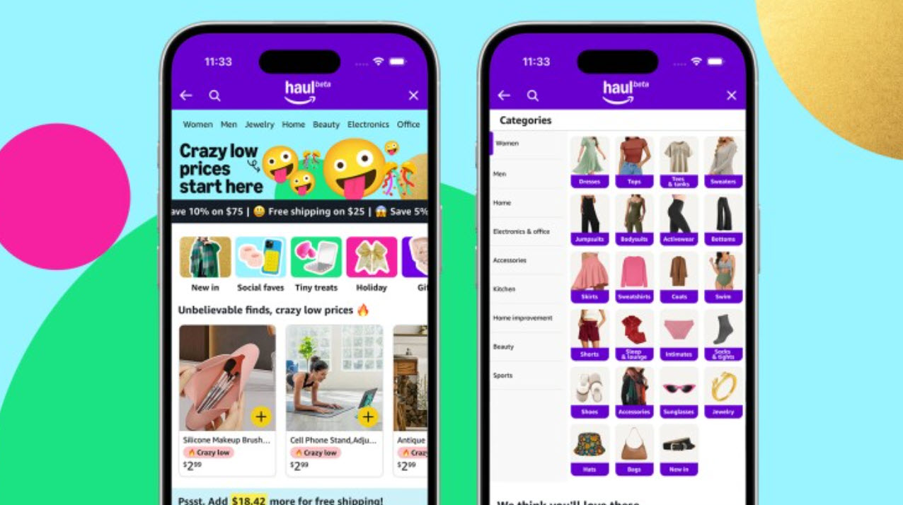 Amazon Haul e gândit doar pentru mobil şi a debutat pe 13 noiembrie 2024. Se găseşte în aplicaţia Amazon şi include practic orice, de la accesorii fashion la bunuri casnice, haine şi electronice. Majoritatea produselor de pe Haul costă sub 10 dolari, iar unele chiar sub un dolar. O husă de iPhone e doar 1.79 USD spre exemplu, o faţă de masă 4.99 USD, iar o pereche de papuci de casă costă 9 dolari.