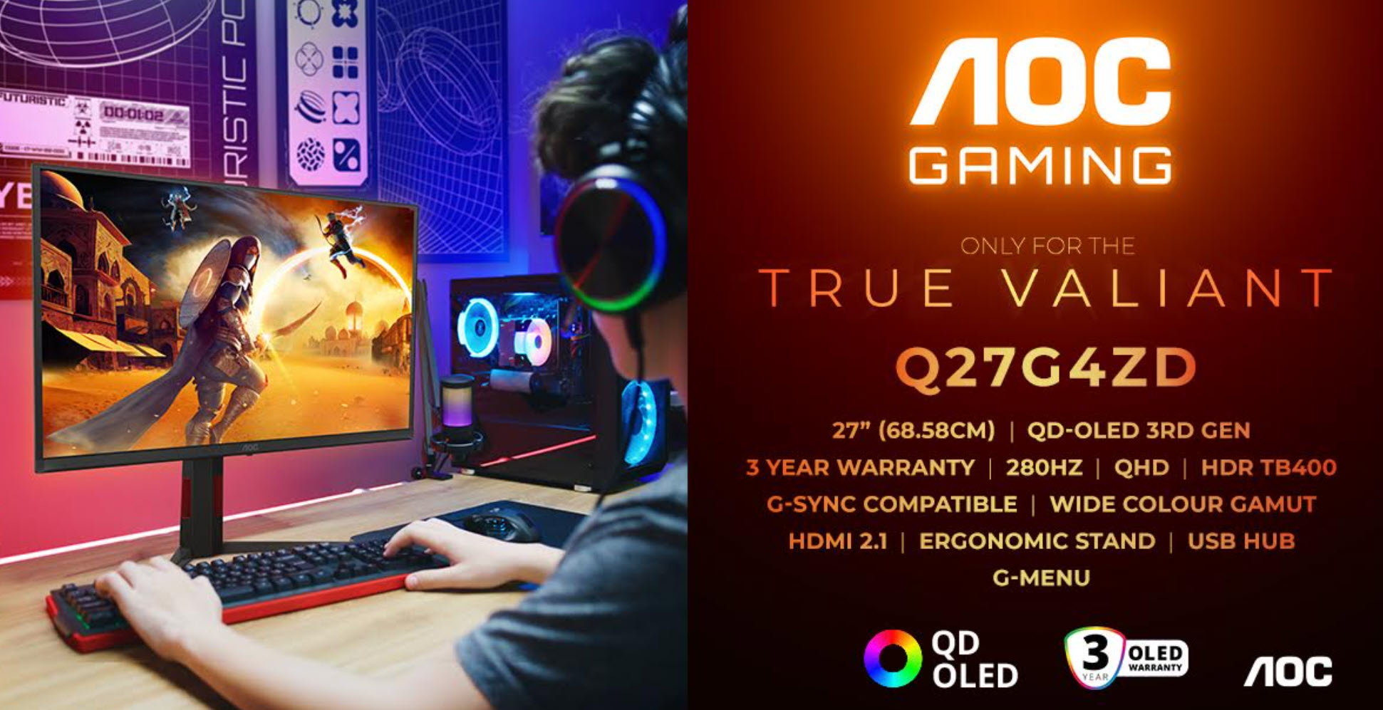 Avem de-a face aici cu un monitor de gaming 2K de 27 inch, mai precis 68.6 cm. Folosește tehnologie QD-OLED de generaţie a treia, la un preţ atractiv. Are timp de răspuns de 0.03 ms GtG şi certificare VESA DisplayHDR True Black 400, cu luminozitate maximă de până la 1000 de nits (3% APL). Tehnologia QD-OLED a debutat în portofoliul AGON by AOC prin gama AGON Pro, cu modele care ajungeau chiar şi la 500 Hz.