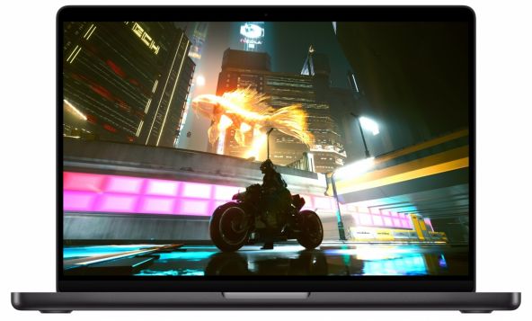 Revenind la performanță, pare că au crescut și capabilitățile în ceea ce privește gamingul. Apple susține că acest MacBook livrează un frame rate de 3.2X mai mare în jocuri precum Cyberpunk 2077 (comparativ cu M1). Avem și randare în Blender de 6.8 ori mai rapidă.