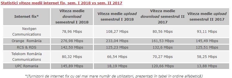De asemenea, aflăm că în semestrul întâi din 2018 utilizatorii români au experimentat viteze de download la internet fix în creștere cu aproximativ 14% la nivel național și viteze de download la internet mobil în creștere cu 16% față de semestrul 2 din 2017. ANCOM mai indică și faptul că tendința de creștere se observă și în ceea ce privește vitezele medii de upload pentru serviciile mobile și fixe.
