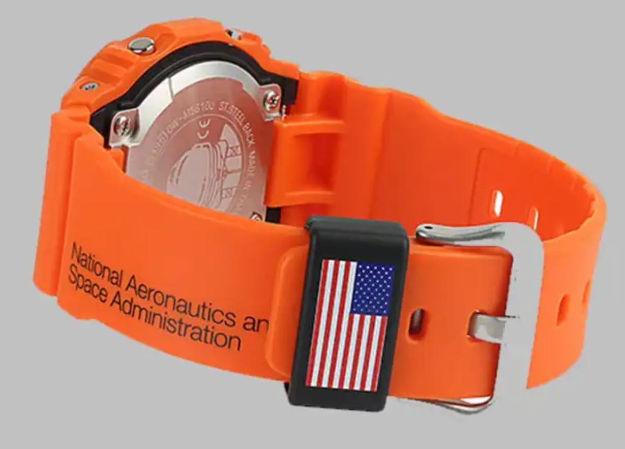 Casio are un istoric lung de colaborări cu NASA, seria sa de ceasuri G-Shock fiind printre puţinele acceptate în cadrul misiunilor spaţiale, pe navete şi pe Staţia Spaţială Internaţională. Acesta este al treilea model NASA G-Shock, după unul complet alb şi unul alb-negru cu logo roşu NASA.