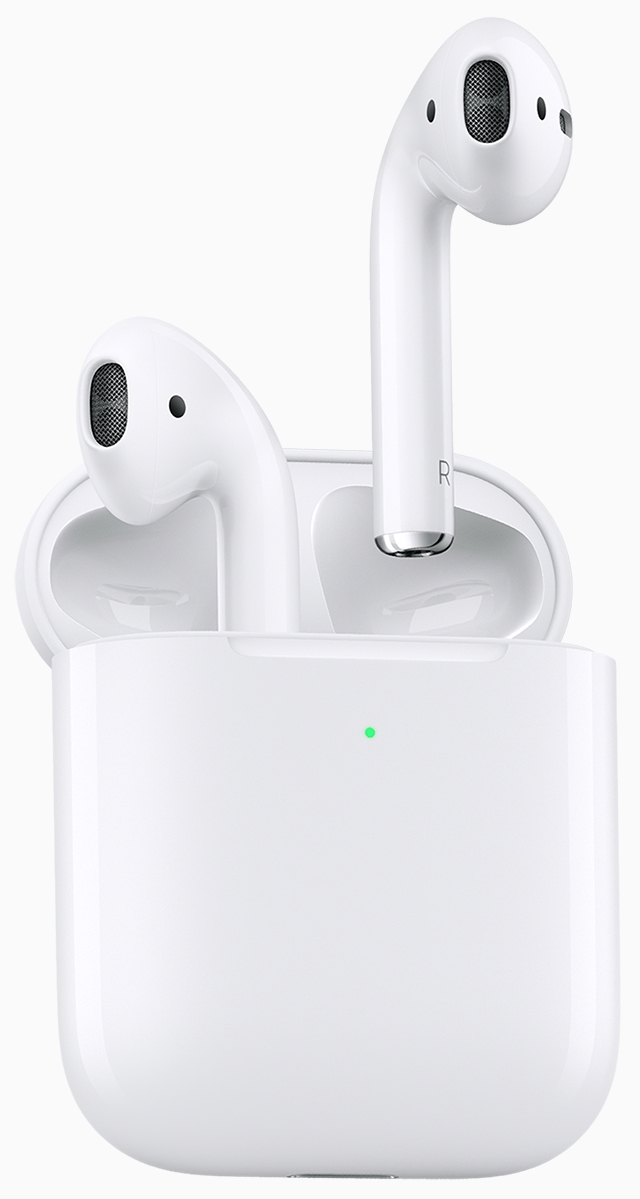 Apple AirPods 2 pot fi achiziționate în varianta standard cu o cutie de reîncărcare via port Lightning, dar și într-o versiune nouă ce suportă încărcare wireless Qi. Cutia de purtare odată încărcată oferă autonomie suficientă pentru 24 ore de playback audio.Vestea bună este că posesorii primei generații AirPods își pot achiziționa o asemenea cutie de reîncărcare cu suport wireless separat.