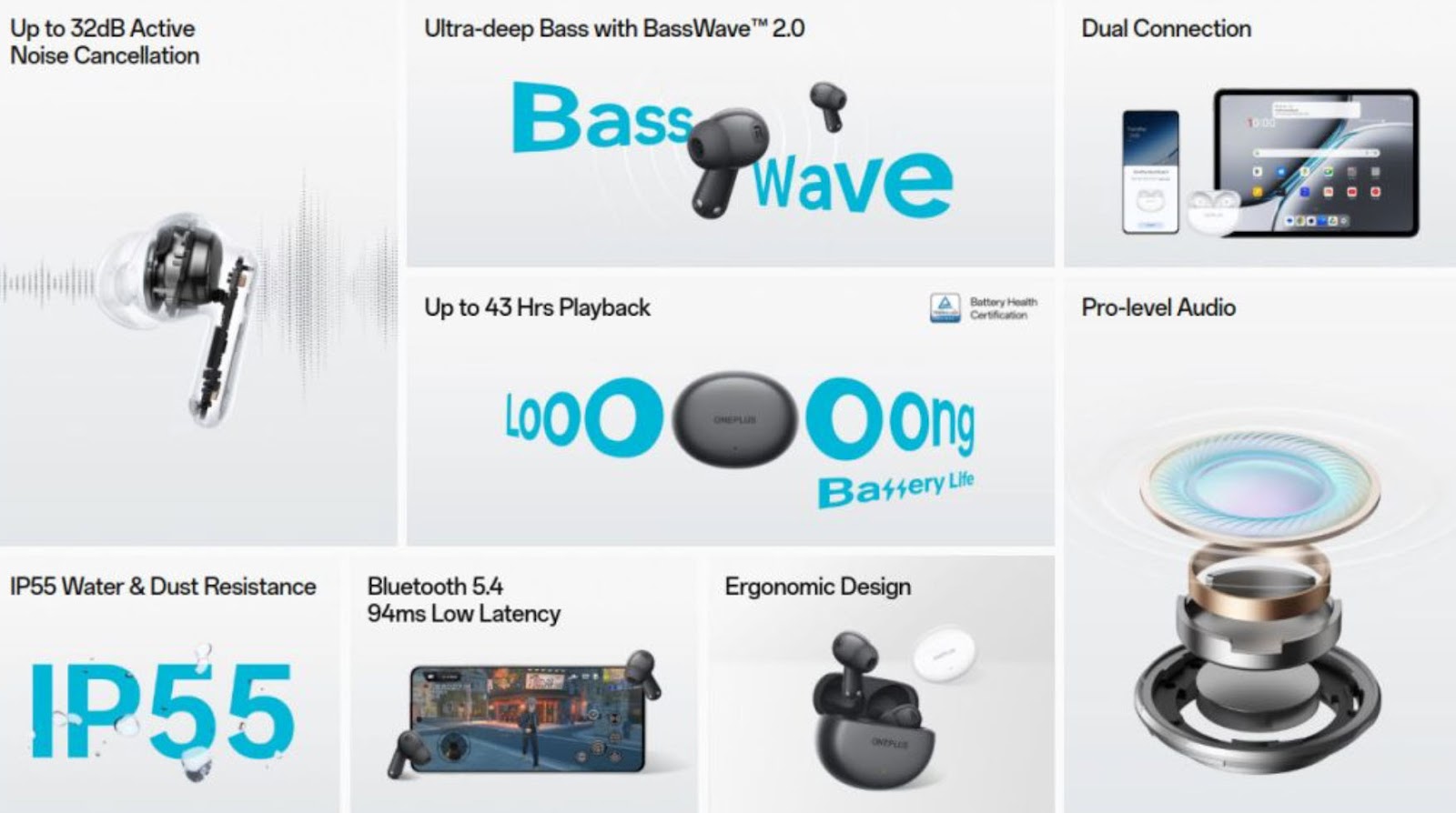Avem de-a face teoretic cu căşti wireless de buget, dar practic dotările lor le pun în compania flagship-urilor. Produsul costă doar 27 de dolari, adică în jur de 120 de lei. Pentru această sumă primim anulare de zgomot activă, cu până la 32 de decibeli, dar şi un bas amplificat prin tehnologie BassWave 2.0. Cum stăm cu autonomia? OnePlus promite până la 12 ore de timp de ascultare de muzică şi un uriaş 43 de ore, cu tot cu tocul de transport şi încărcare.