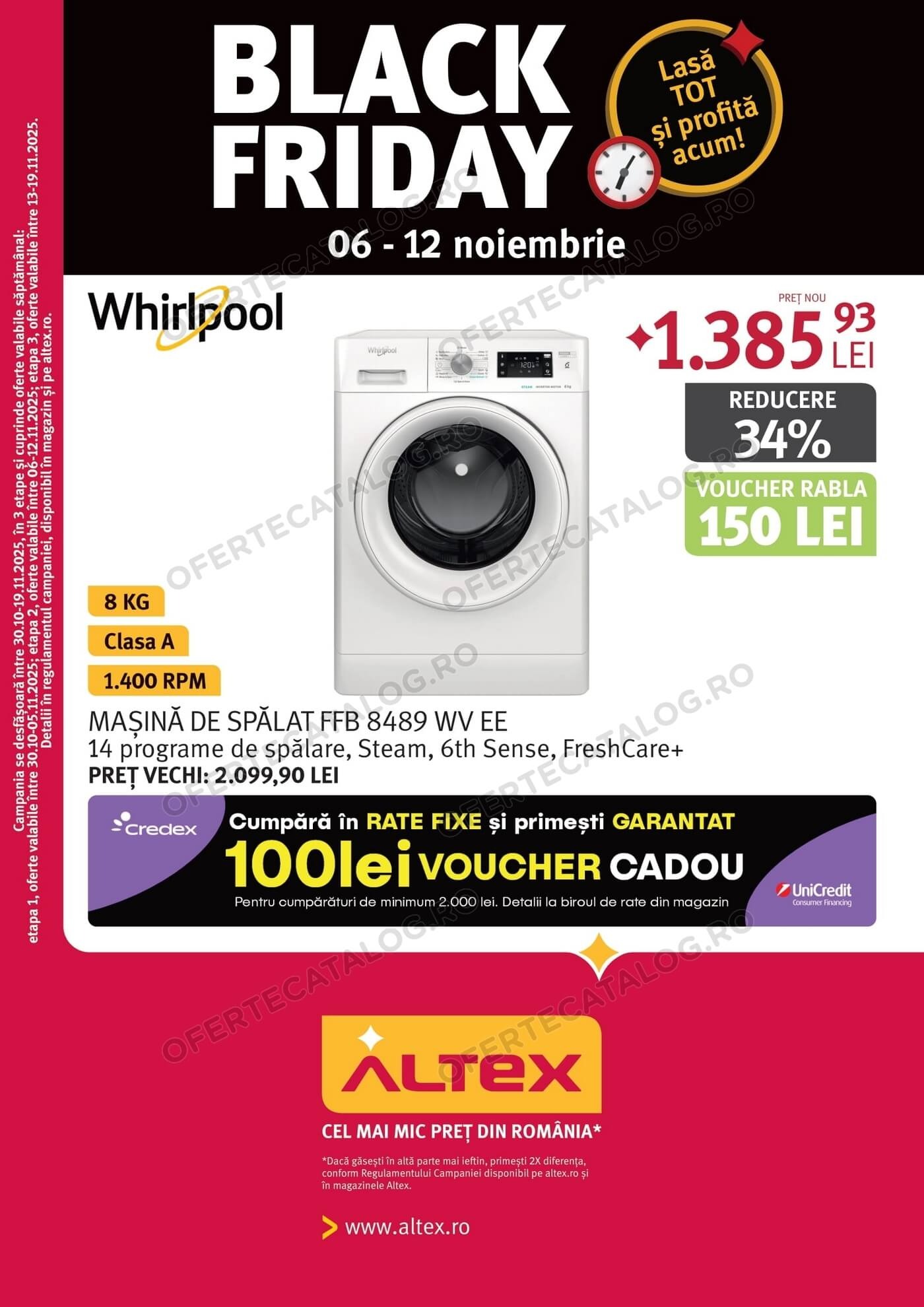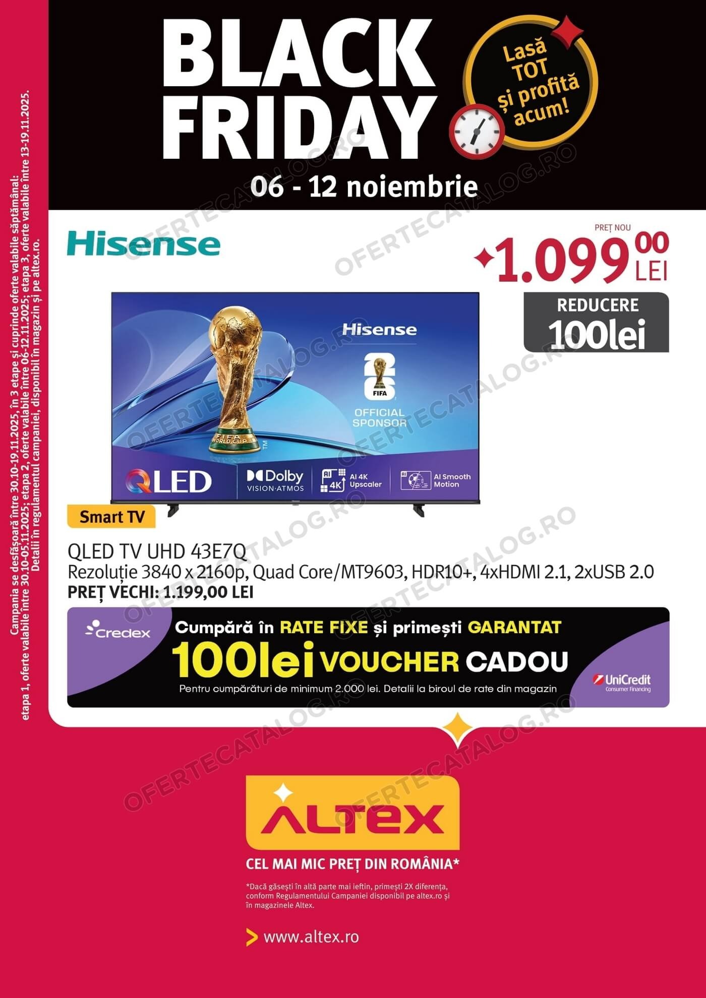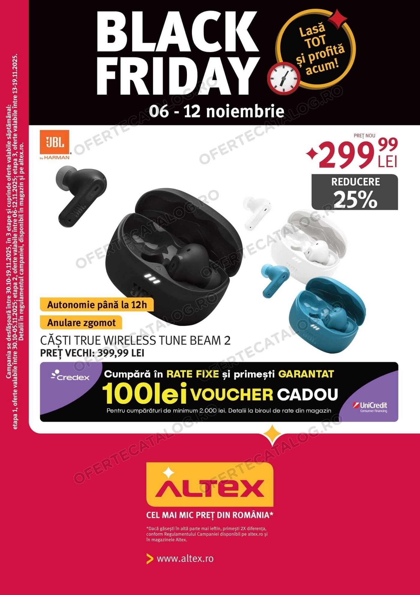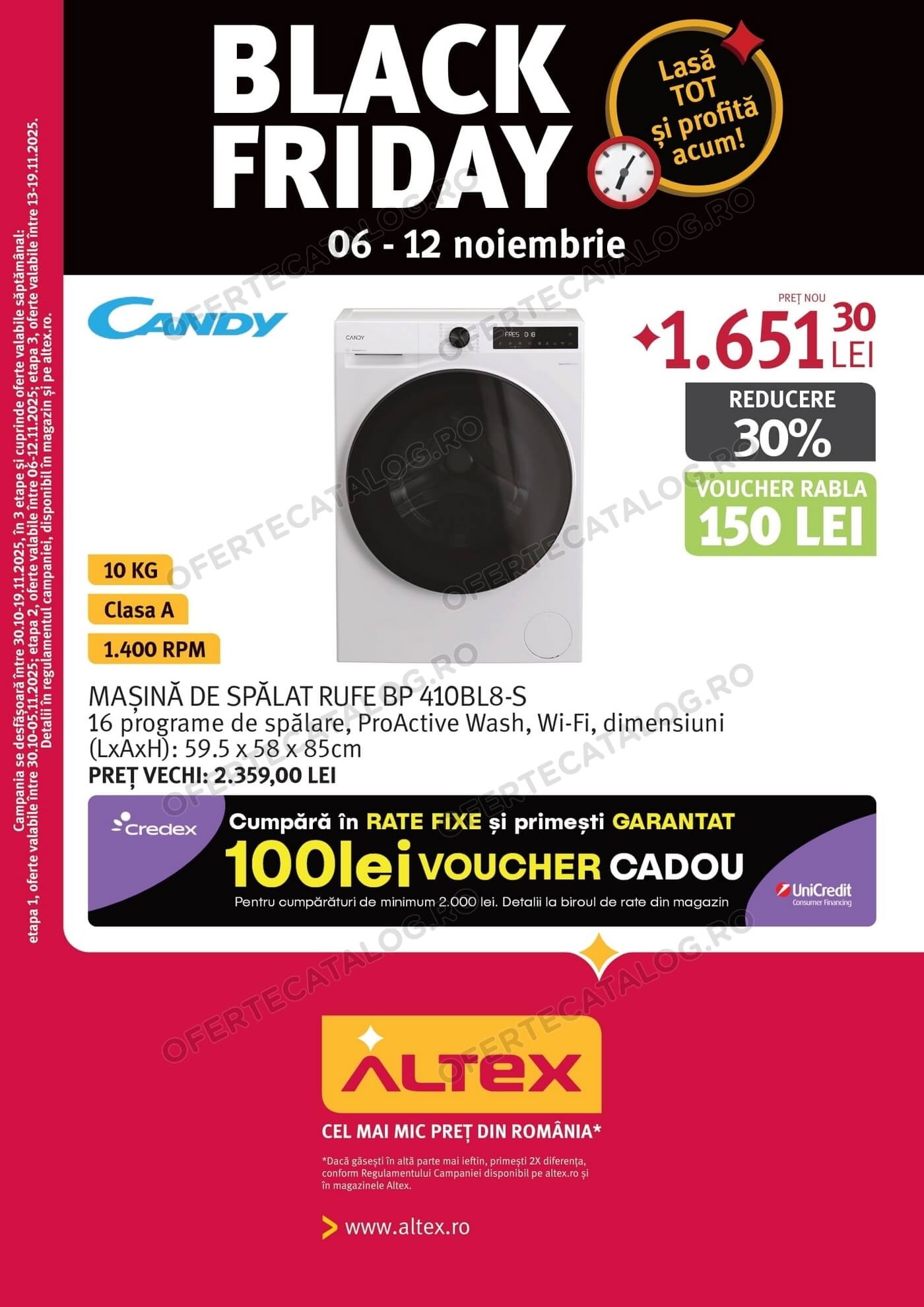 Valul 2 din Black Friday by Altex are loc curând. Mai exact, începând de mâine, avem noi produse în campania promoțională organizată de retailer. Cu ore înainte de debut, însă, putem arunca o privire asupra catalogului cu oferte și să ne decidem dacă avem nevoie de un produs la reducere. Catalogul a fost publicat pe ofertecatalog.ro recent și este valabil între 6 și 12 noiembrie. Iar pe lângă prețuri mai bune, clienții care aleg să cumpere în rate fixe primesc și un voucher cadou de 100 lei.