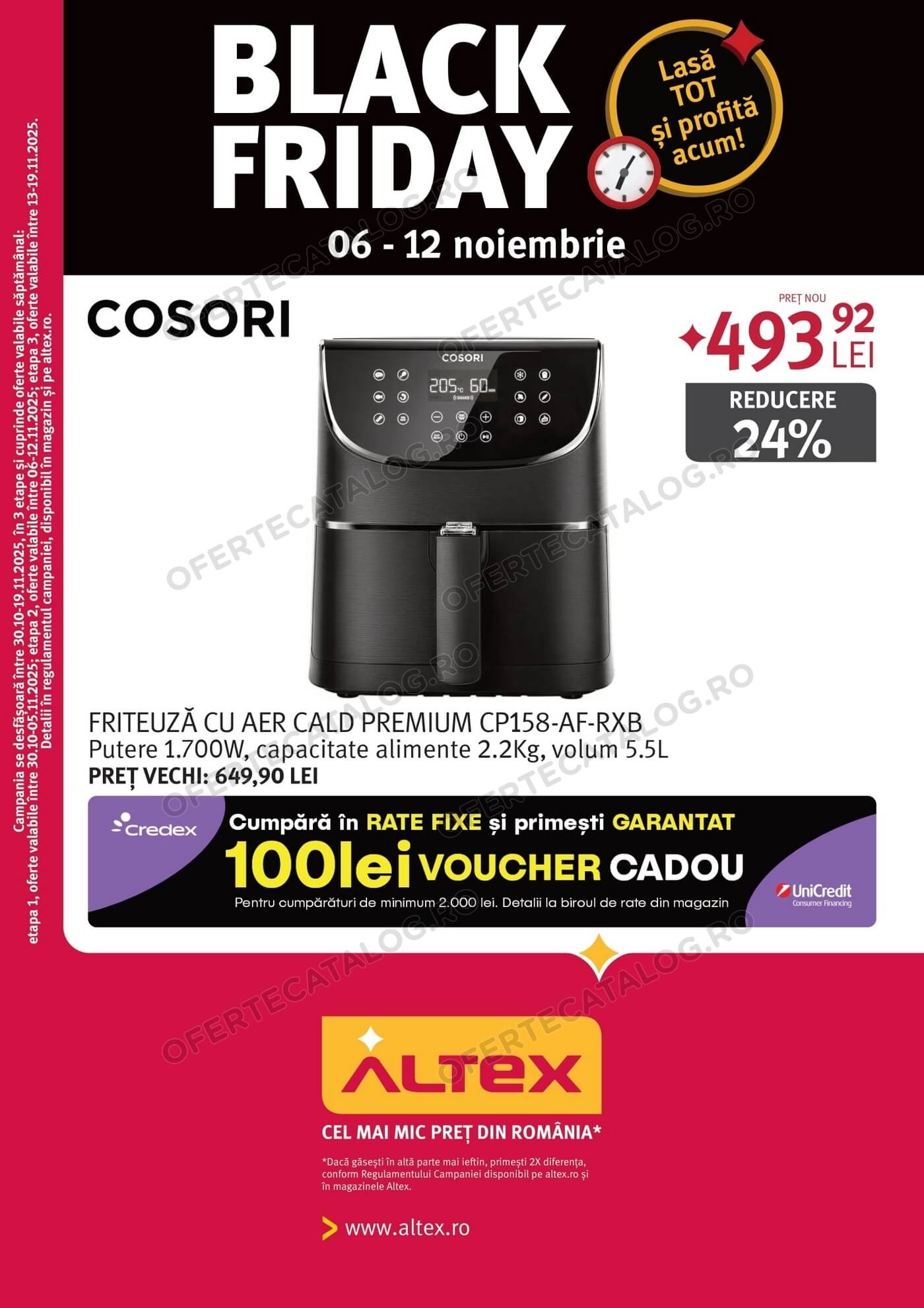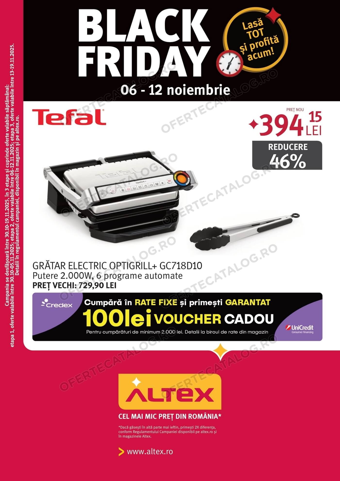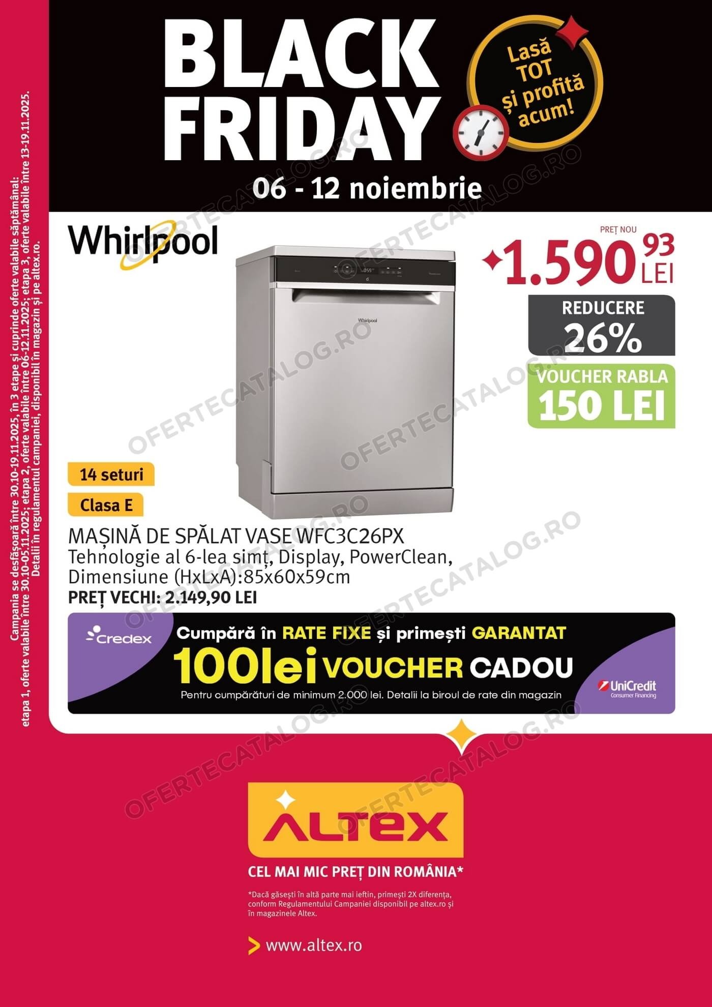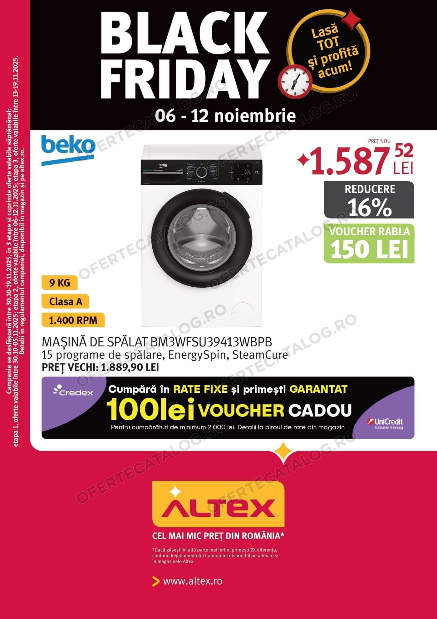 Valul 2 din Black Friday by Altex are loc curând. Mai exact, începând de mâine, avem noi produse în campania promoțională organizată de retailer. Cu ore înainte de debut, însă, putem arunca o privire asupra catalogului cu oferte și să ne decidem dacă avem nevoie de un produs la reducere. Catalogul a fost publicat pe ofertecatalog.ro recent și este valabil între 6 și 12 noiembrie. Iar pe lângă prețuri mai bune, clienții care aleg să cumpere în rate fixe primesc și un voucher cadou de 100 lei.