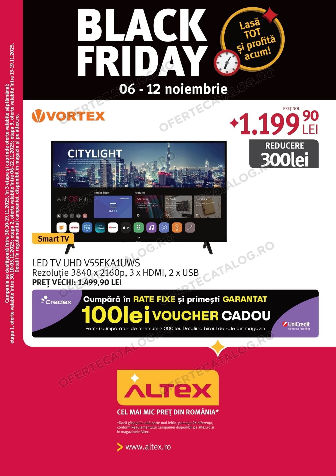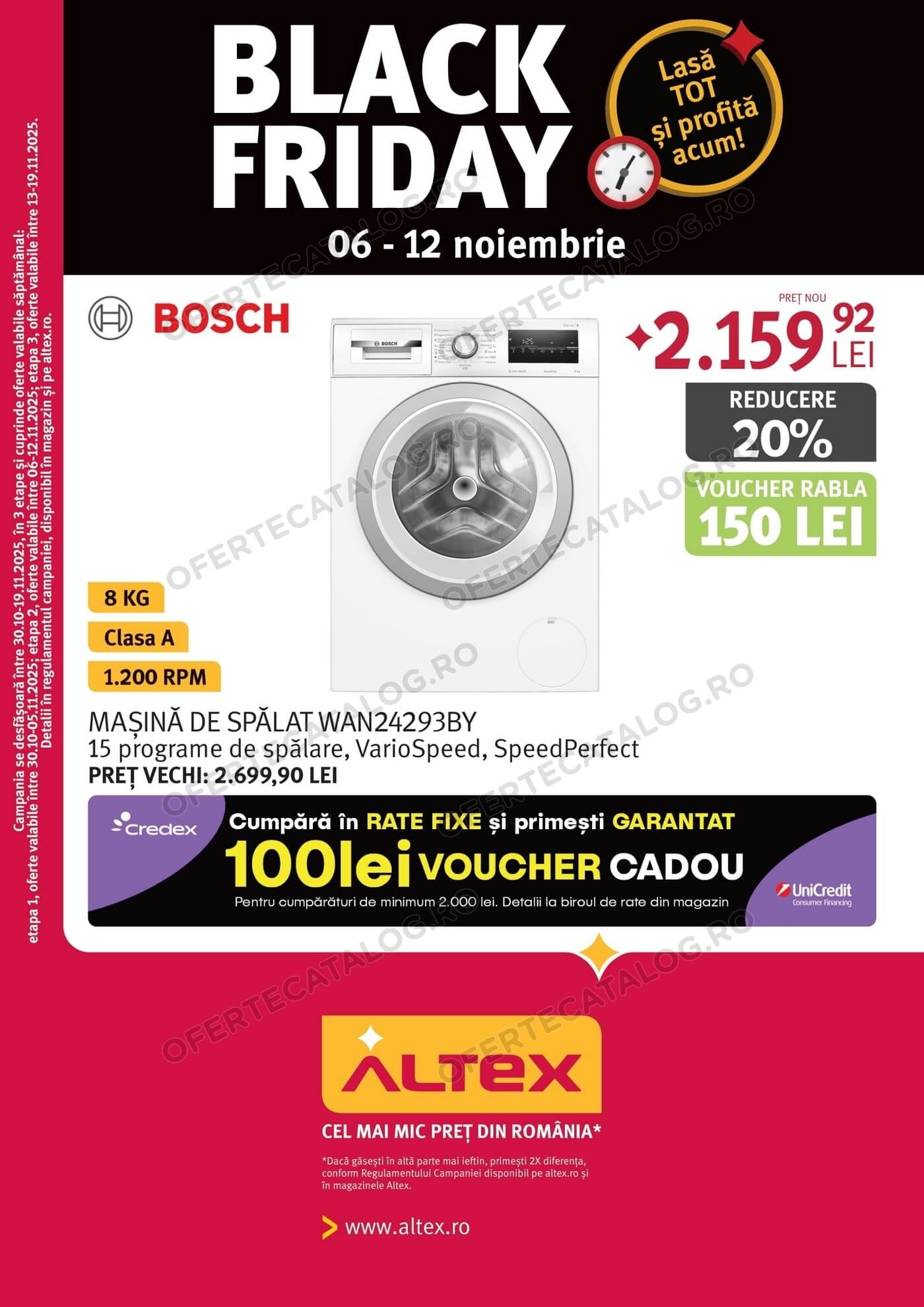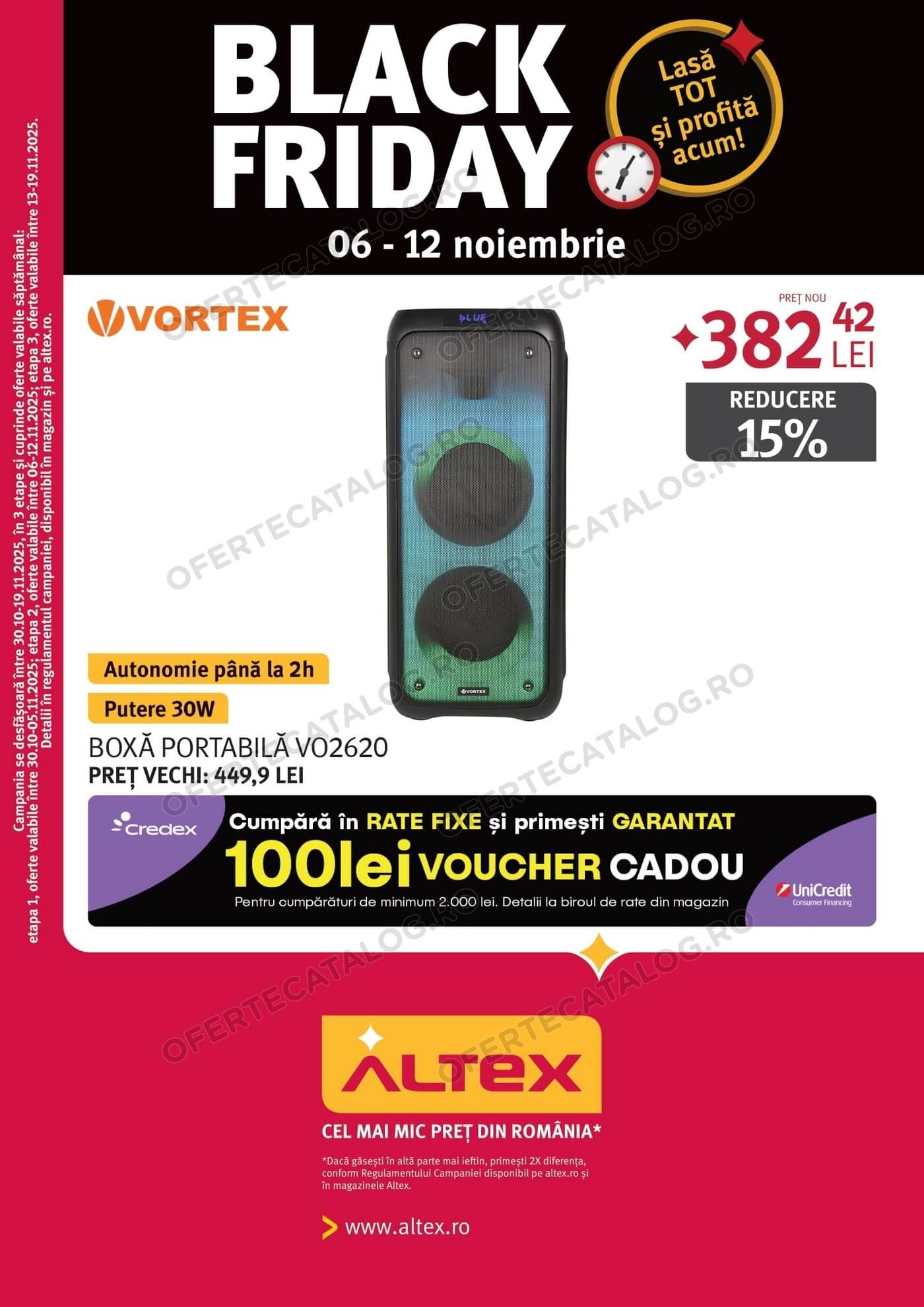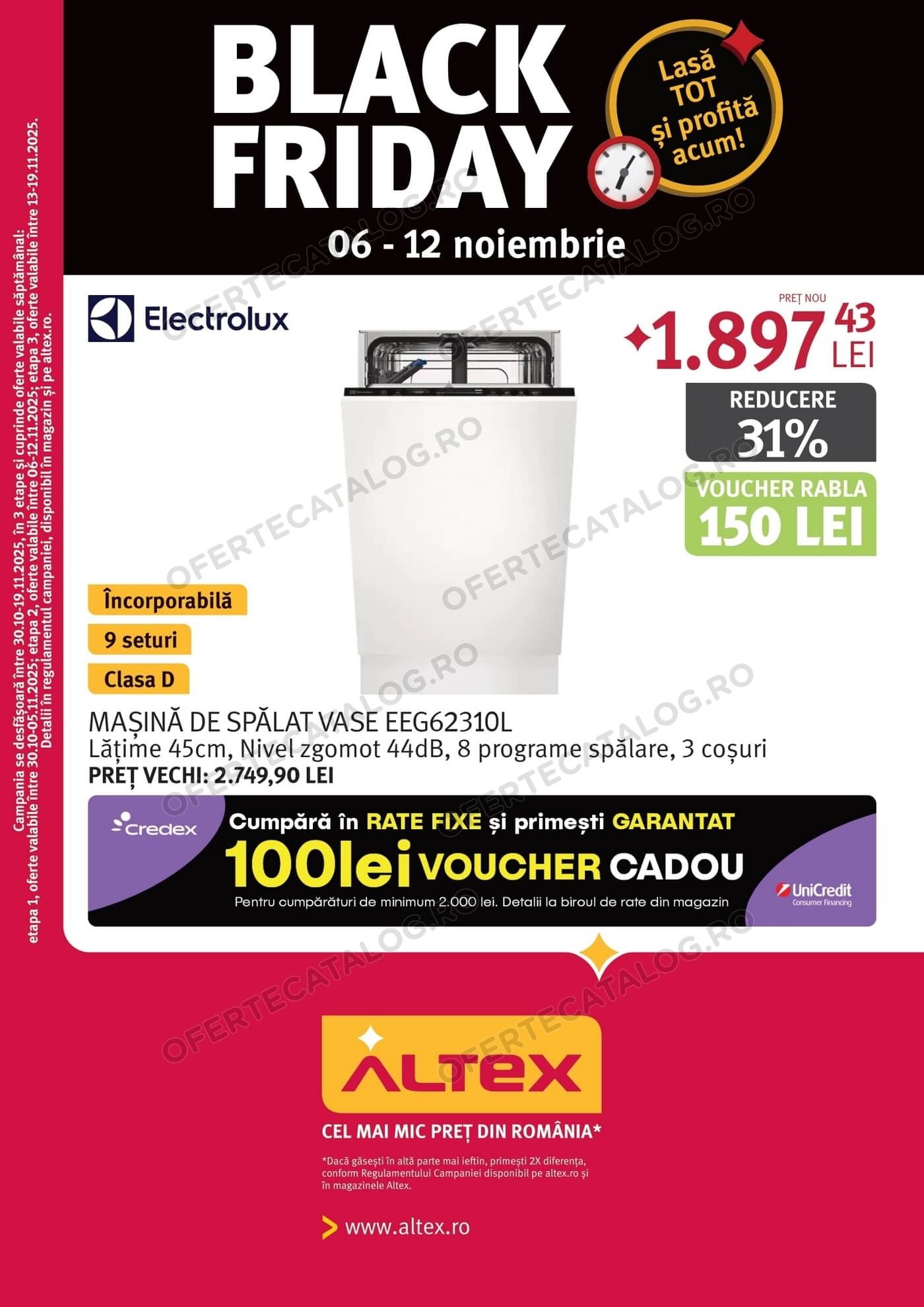 Valul 2 din Black Friday by Altex are loc curând. Mai exact, începând de mâine, avem noi produse în campania promoțională organizată de retailer. Cu ore înainte de debut, însă, putem arunca o privire asupra catalogului cu oferte și să ne decidem dacă avem nevoie de un produs la reducere. Catalogul a fost publicat pe ofertecatalog.ro recent și este valabil între 6 și 12 noiembrie. Iar pe lângă prețuri mai bune, clienții care aleg să cumpere în rate fixe primesc și un voucher cadou de 100 lei.