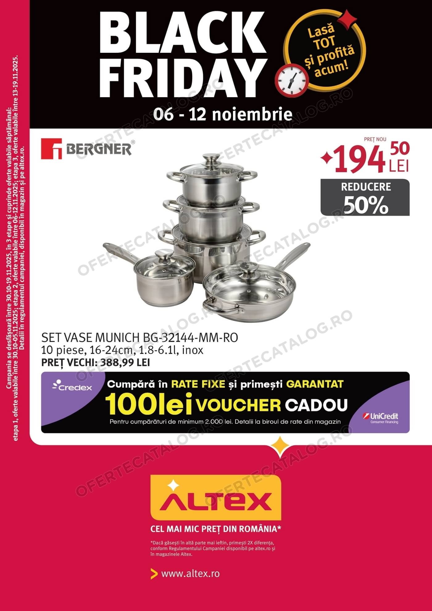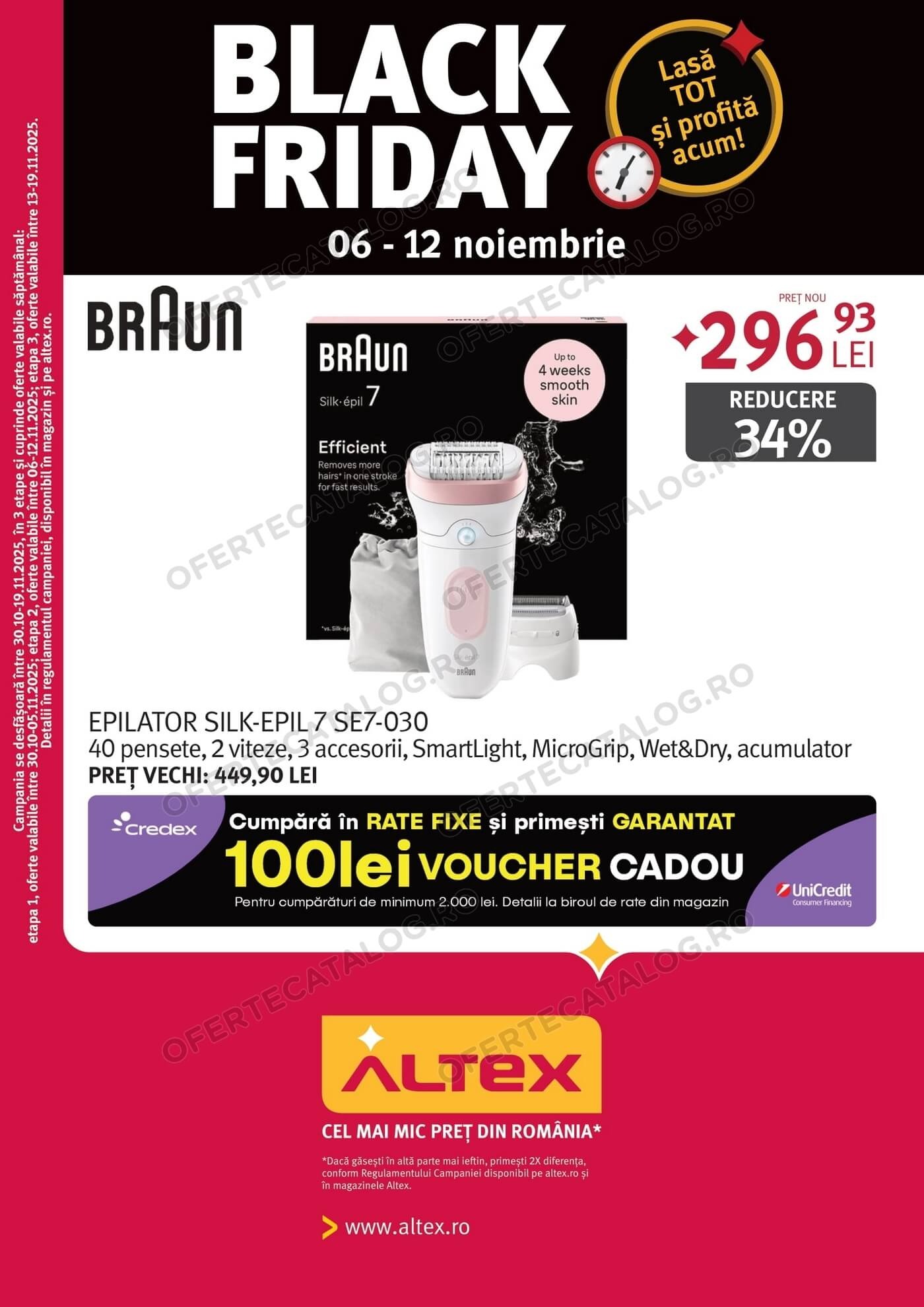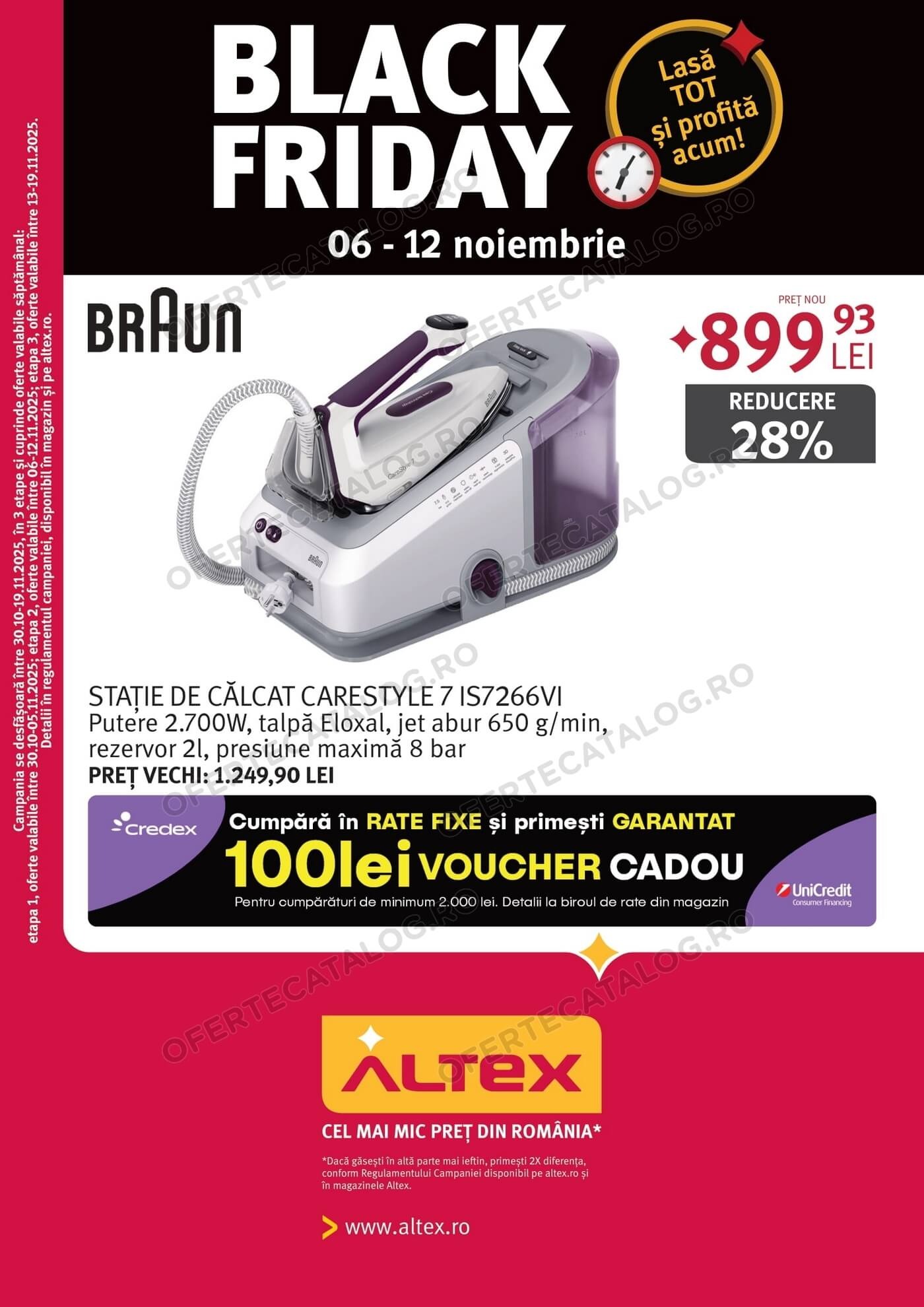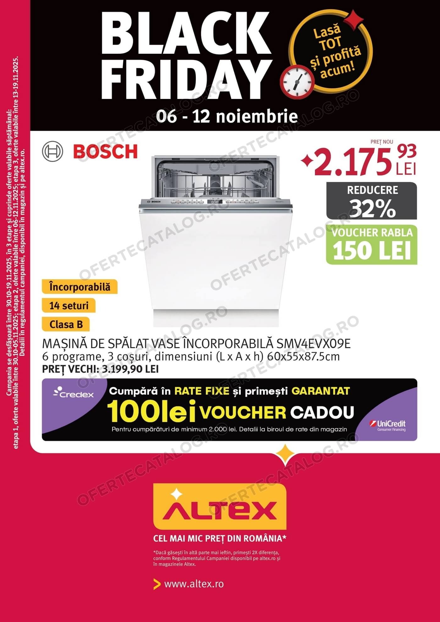 Valul 2 din Black Friday by Altex are loc curând. Mai exact, începând de mâine, avem noi produse în campania promoțională organizată de retailer. Cu ore înainte de debut, însă, putem arunca o privire asupra catalogului cu oferte și să ne decidem dacă avem nevoie de un produs la reducere. Catalogul a fost publicat pe ofertecatalog.ro recent și este valabil între 6 și 12 noiembrie. Iar pe lângă prețuri mai bune, clienții care aleg să cumpere în rate fixe primesc și un voucher cadou de 100 lei.