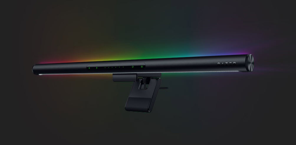 Aici avem de-a face cu o bară luminoasă pentru birourile de gaming. Are iluminare duală, cu LED-uri orientate atât spre față, cât şi spre spate. Sunt special gândite pentru care se joacă sau lucrează noaptea. Are randament cromatic (CRI) de 95, cu o iluminare vie şi naturală. Ating 500 LUX şi poate ilumina 60 cm x 30 cm. Are şi Razer Chroma RGB, peste 16.8 milioane de culori şi completează majoritatea curburilor şi dimensiunilor monitoarelor. Costă 149 euro.