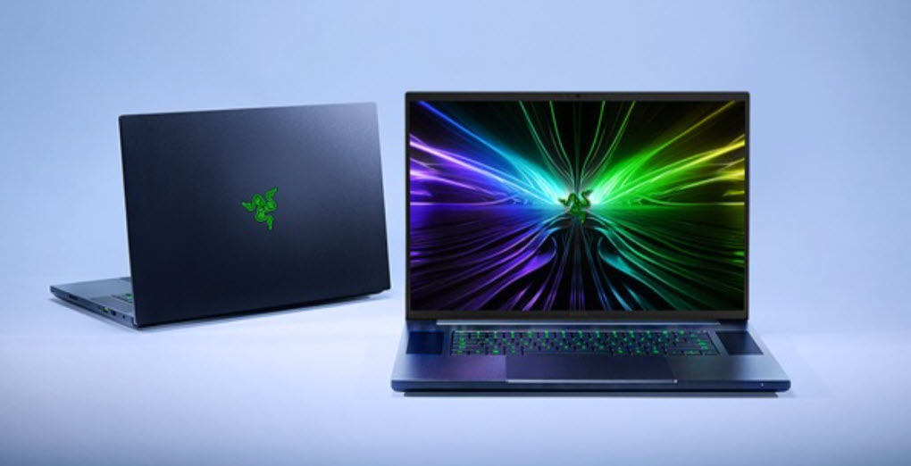 Începem cu Razer Blade 16, primul laptop din lume cu ecran OLED de 16 inch, cu rezoluţie de 2560 x 1600 pixeli şi refresh rate de 240 Hz. Are şi timp de răspuns de 0.2 ms. Panoul său OLED e realizat în colaborare cu Samsung. Este şi primul laptop VESA Certified Clear MR 11000, ant motion blur. Va sosi în variante dual mode Mini LED şi dispune de tastatură cu iluminare RGB, difuzoare quad şi o carcasă din aluminiu, cu logo Razer iluminat.
