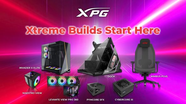 În zona de gaming, XPG a adus carcase cu design neobișnuit (INVADER X ELITE cu sticlă panoramică sau DOCK cu exoschelet triunghiular și materiale reciclate), răcire cu TDP mare (LEVANTE VIEW PRO 360 cu display de 6,7” și coolere de aer de 230W) și surse precum PYMCORE SFX Platinum 1000W sau CYBERCORE III 1200W, cu monitorizare GPU. În plus, XPG a introdus și două modele de scaune de gaming, NIMBUS și NIMBUS PLUS.