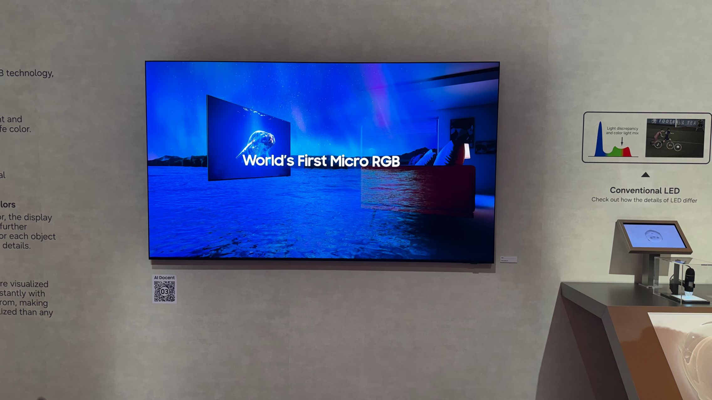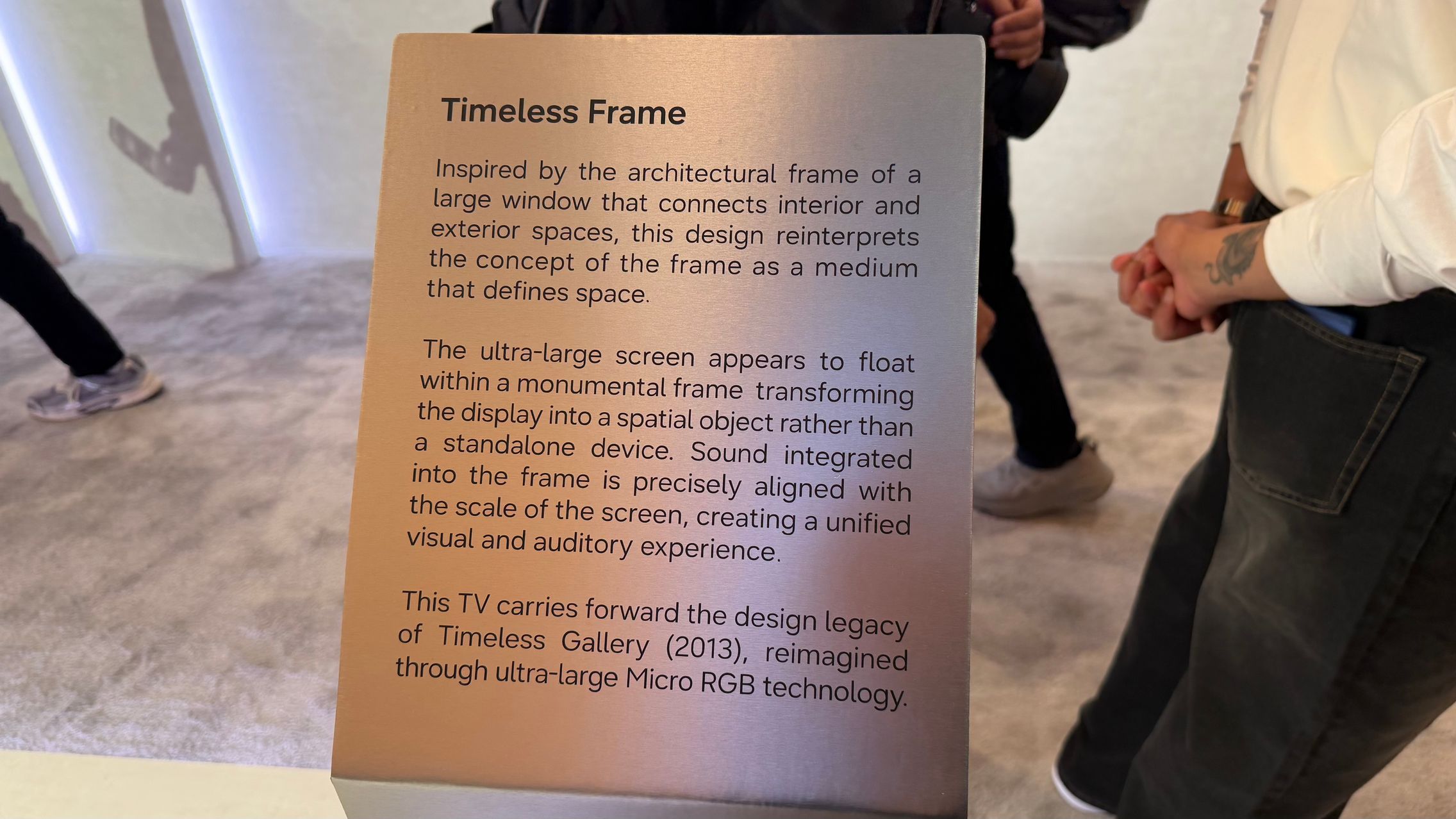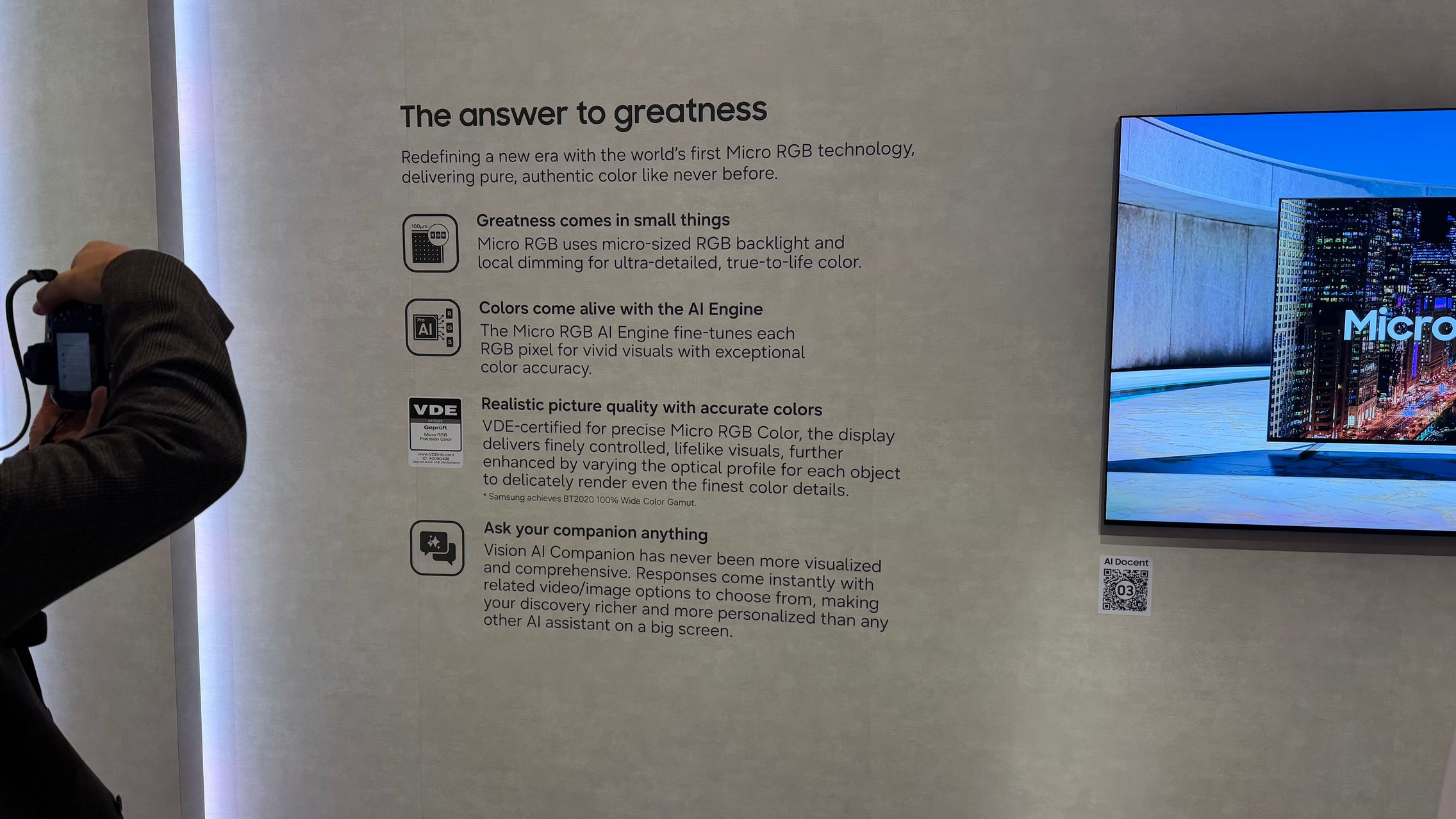 Mulţumită ramei Timeless, TV-ul pare să plutească şi arată ca o fereastră cu design arhitectural posh. Micro RGB înseamnă că Samsung a folosit diode microscopice verzi, roşii şi albastre pentru a genera culori independent. Nu doar LED-uri mici şi albe cu filtru de culoare peste. Acest model inaugurează şi VAC, adică Vision AI Companion, asistent pe bază de control vocal, care îţi poate chiar recomanda ce să mănânci la un serial.