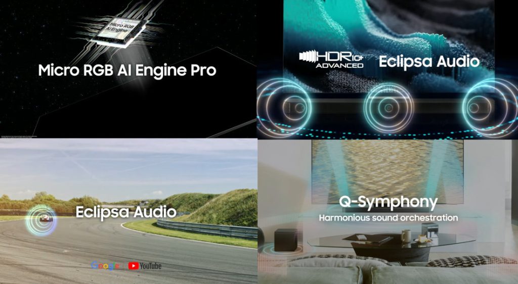 Sau AI Sports, care scoate comentariul de la meciuri şi face mingea mai vizibilă. Acest televizor micro RGB atinge o gamă de culori BT.2020 de 100%, cea mai largă de pe un TV modern. Are şi protective anti reflexie şi tuning de imagine cu AI. Plus noul HDR10+ Advanced şi Eclipsa Audio, noi standarde de imagine şi audio inaugurate de Samsung.