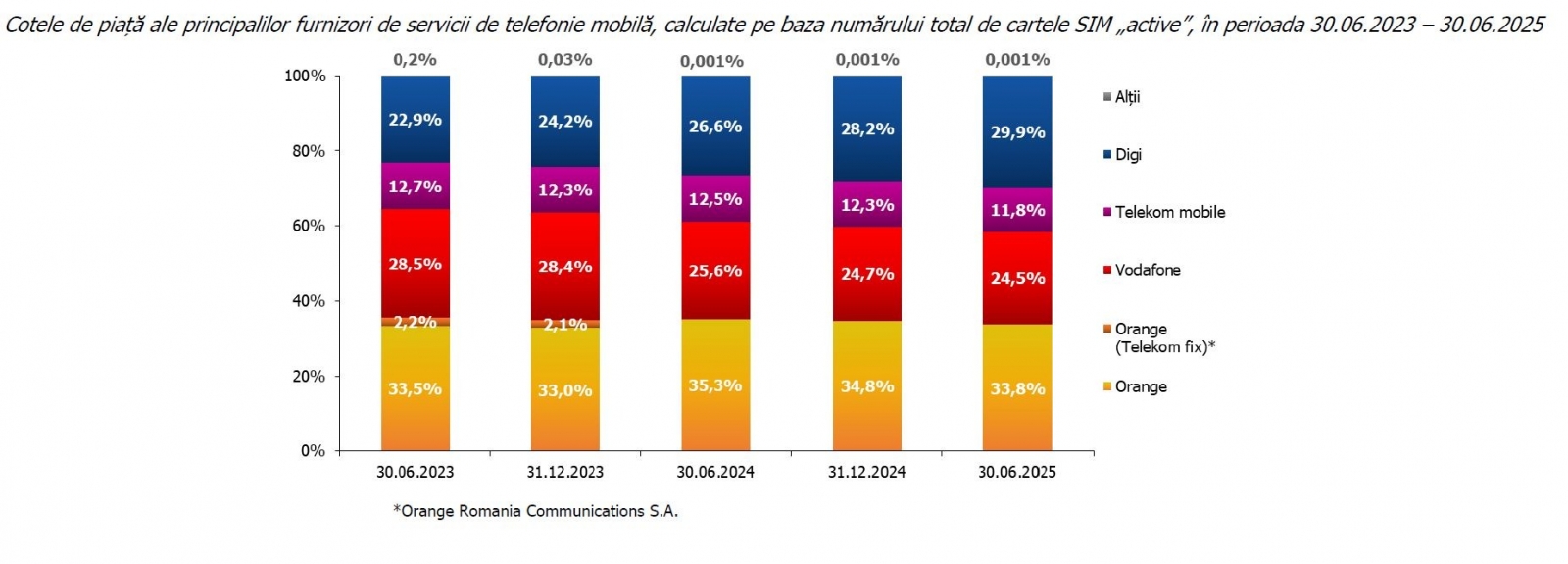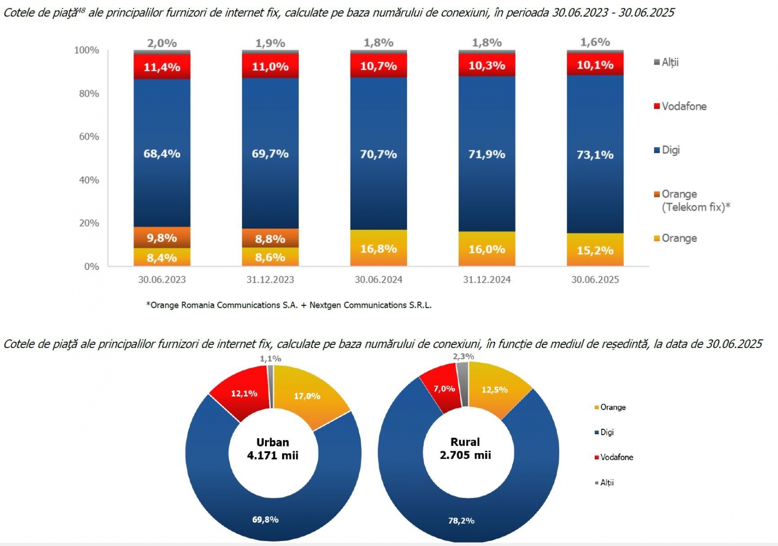- Digi: 73,1% cotă de piață (în creștere de la 72%)