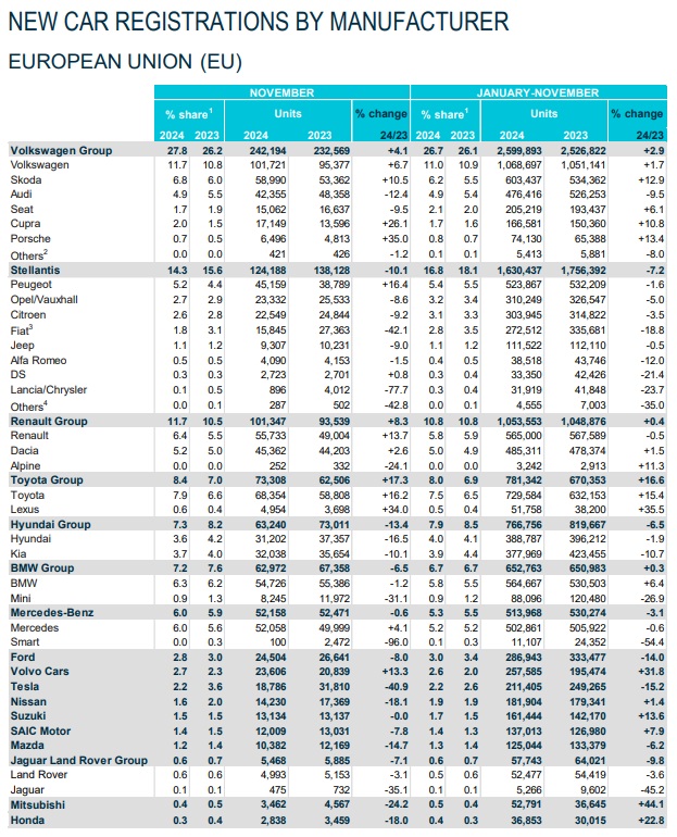 Dacia a avut un an 2024 de succes, iar asta se vede prin cifrele publicat de către ACEA, adică Asociația Constructorilor Europeni de Automobile din luna noiembrie 2024. Anterior aflam că Dacia Sandero va încheia acest an pe primul loc în topul celor mai bine vândute modele din Europa și că presa germană lăuda CEO-ul DACIA pentru reușitele obținute pe parcursul acestor 12 luni.