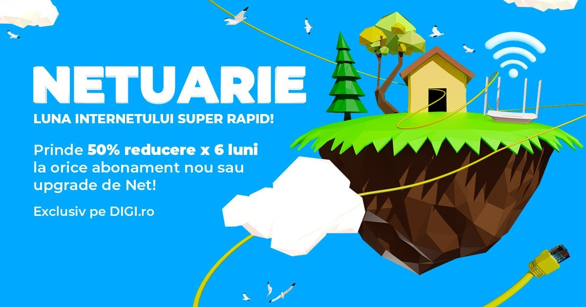 DIGI continuă tradiția și transformă februarie în „Netuarie”, oferind clienților o reducere de 50% la abonamentele Fiberlink pentru primele 6 luni. Campania este activă în perioada 10 – 28 februarie 2025 și se aplică atât clienților noi, cât și celor existenți care fac un upgrade. Detalii cu privire la această campanie avem mai jos.