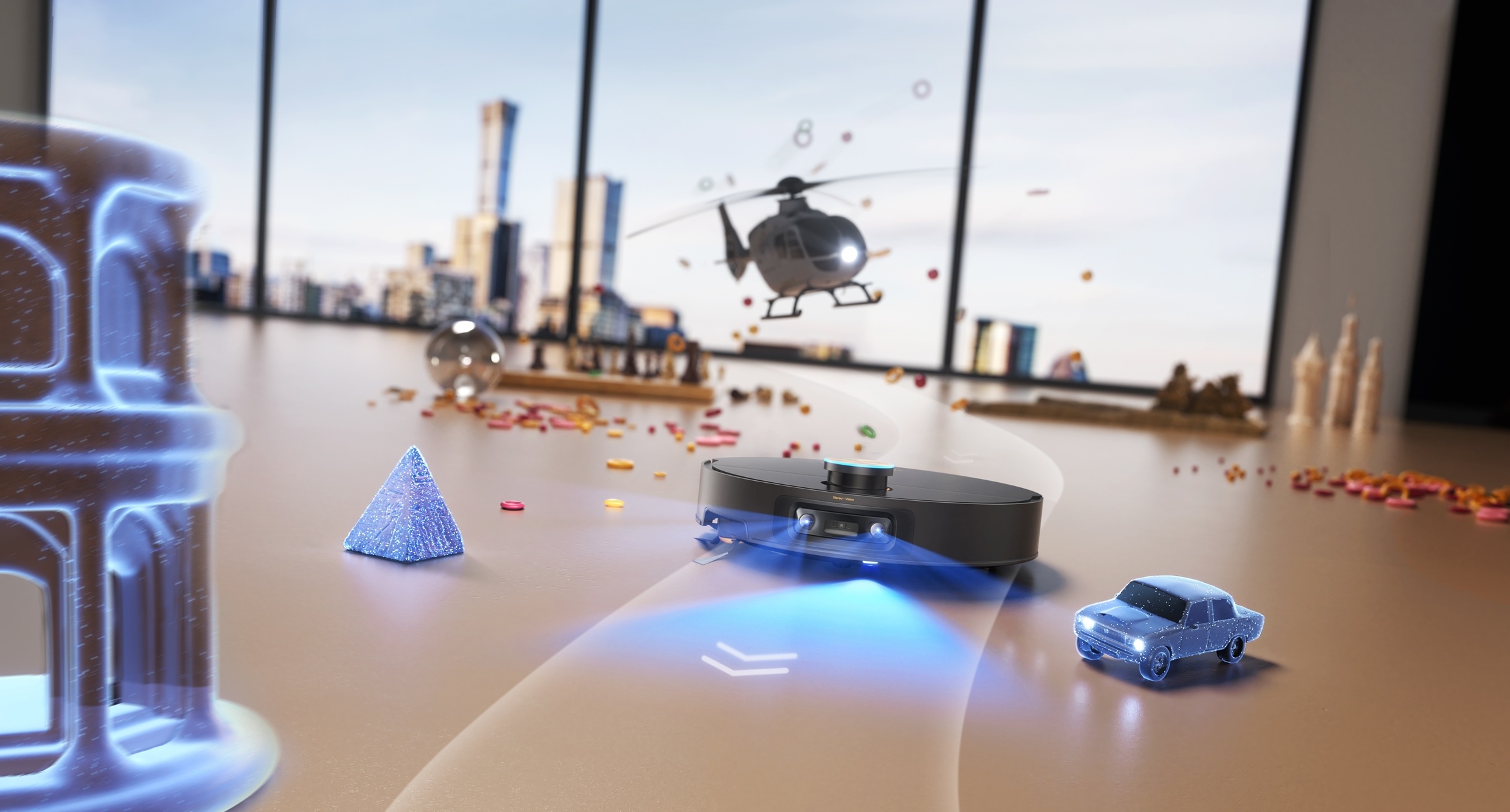 În primul rând trebuie să știi că acesta este un robot flagship de aspirare și spălare. Se remarcă prin sistemul VersaLift (LDS retractabil) care îl ajută să navigheze și să se strecoare pe sub mobila joasă, având doar 7.95 cm înălțime. Vine și cu sistem OmniSight AI (include și 2x camere) pentru a detecta peste 280 de obiecte și astfel le evită cu precizie foarte mare.