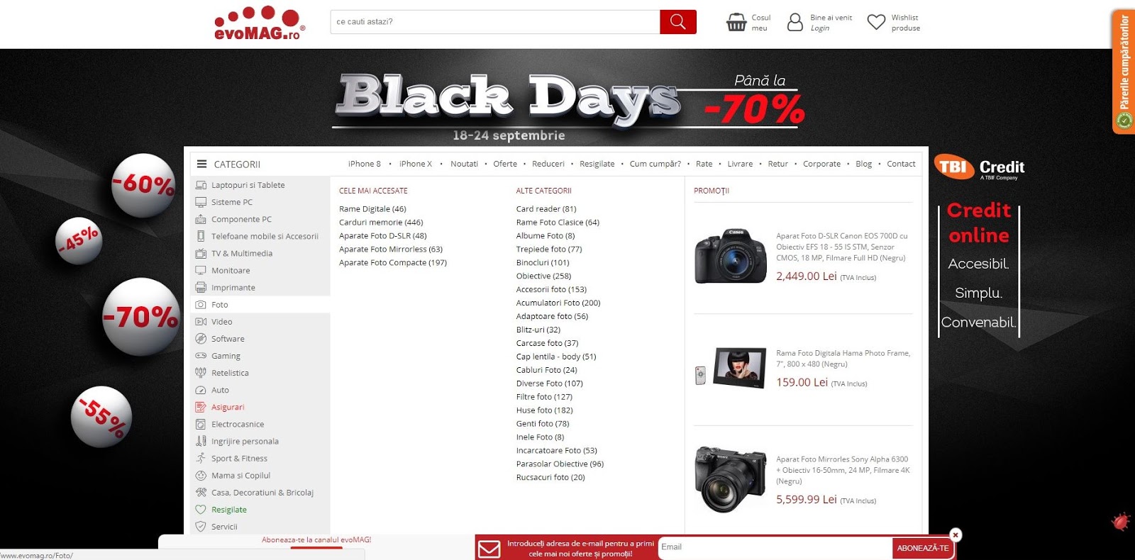 Au fost mărite şi scoase în evidenţă butoanele de "Adaugă în Coş" şi "Adăugă la Wishlist" pentru o eficienţă mai bună la shopping. La navigarea în categorii se deschid în centrul ecranului sub categorii şi apoi în dreapta promoţii, fără pic de lag. Probabil cea mai bună idee aici a fost că retailerul să scape de chenare care se suprapun şi să schimbe fontul.