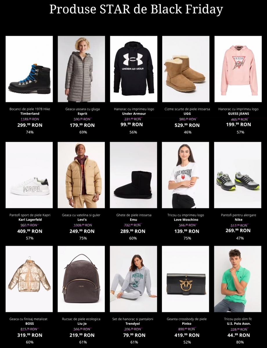 - Până la - 75%: GAP, U.S. Polo Assn., Diesel, Love Moschino, Trendyol