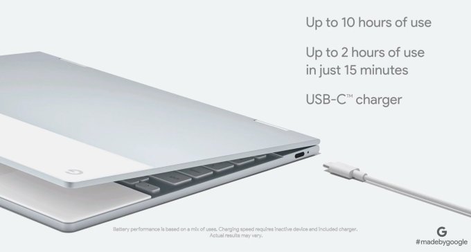 Există chiar şi un buton fizic dedicat pentru asistentul virtual pentru a începe interacţiunea cu acesta. Google a mai prezentat şi Pixel Pen, stylus-ul asociat acestui laptop, care costă 99 de dolari şi se vinde separat. Veţi putea să îl folosiţi pentru a încercui text, a desena şi a sublinia conţinuturi. Stylus-ul foloseşte tehnologie Wacom, oferind peste 2000 de nivele de presiune şi detectare a inclinării la 60 de grade. Are latență de 10 ms.