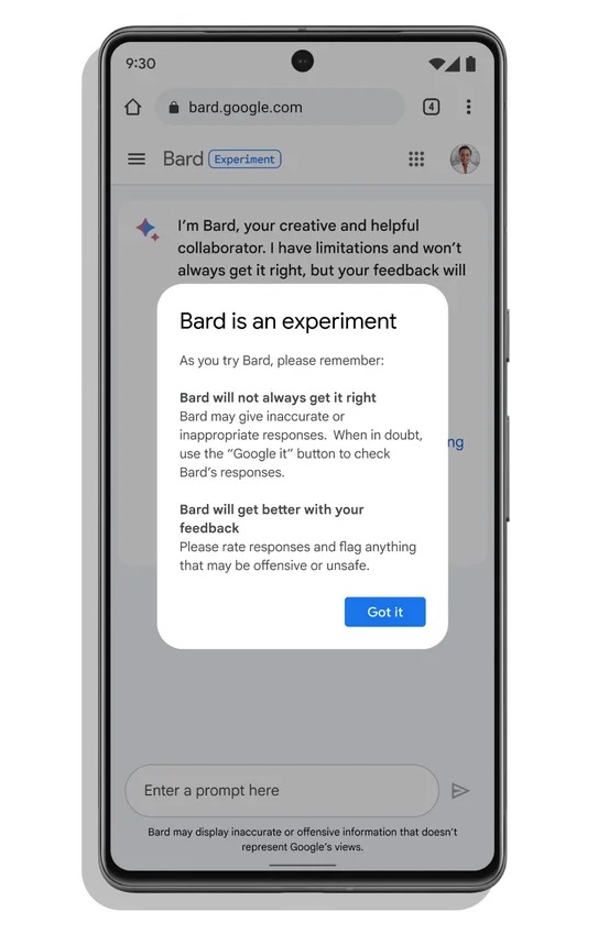 Există și multe mențiuni ale Google prin care compania scoate în evidență faptul că Bard este în stadiul incipient de dezvoltare și încă învață, astfel că nu este un înlocuitor pentru un motor de căutare, ci o unealtă pentru a-l completa. Se poate utiliza bard pentru a crea schițe sau discuta cu chatbot-ul despre orice, la fel cum se întâmplă și cu ChatGPT.