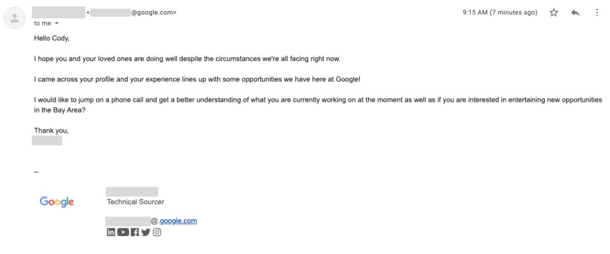 Recent contul Twitter Killed by Google a publicat o ofertă de job din partea Marelui G, adresată lui Cody Ogden, omul din spatele site-ului. Ogden nu pare prea interesat de acel job, preferând să facă un sondaj cu răspunsuri haioase la mailul Google. Aparent el consideră că "doar dezamăgirea" nu reprezintă o experienţă suficientă pentru a fi angajat al gigantului tech.