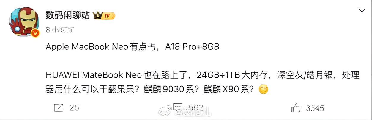 Recent a debutat MacBook Neo, cel mai accesibil laptop din portofoliul Apple, orientat spre elevi, studenți, utilizatori „casnici”. Ei bine, pare că Huawei pregătește în schimb „MateBook Neo”. Numele nu e bătut în cuie, dar la această denumire face referire Digital Chat Station, popularul tipster ce activează pe weibo, rețeaua socială chineză. Chiar dacă denumirea ar fi similară, specificațiile duc spre un model premium, orientat spre utilizatorii ce își doresc cât mai multă performanță. Mai jos avem dtalii!