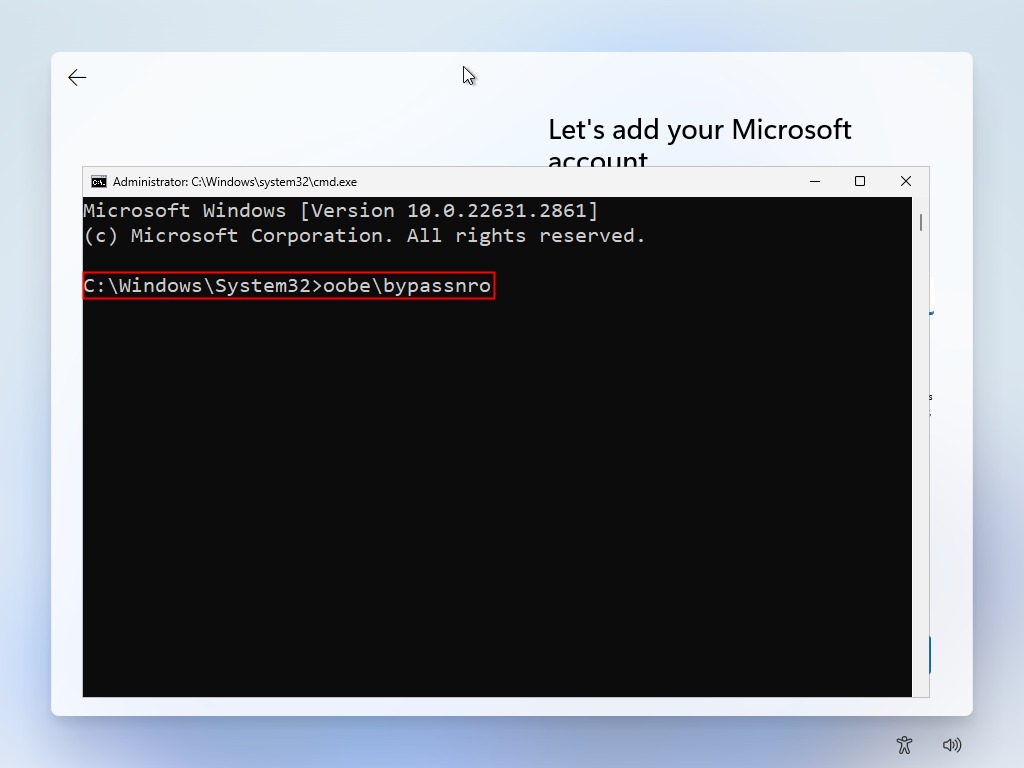 După restart, comanda OOBE/BYPASSNRO va funcționa din nou. E însă de așteptat ca această soluție să fie blocată într-un viitor update, la fel cum s-a întâmplat în cazul altor metode.