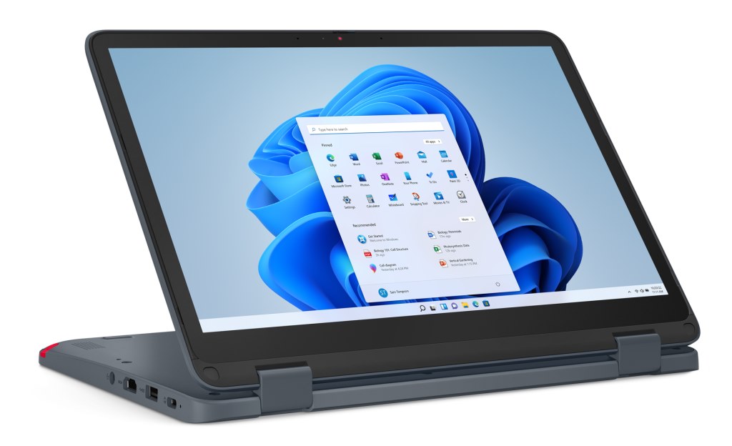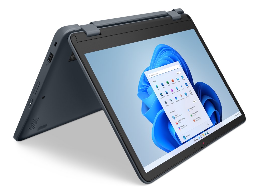 Urmează și o variantă 2 în 1 și anume Lenovo 300w Yoga Gen4 care deși folosește tot un panou de 11.6 inch, în cazul de față este unul tactil și cu protecție Gorilla Glass. Are și stylus la pachet, bun pentru notițe, schițe și desene. Vine cu CPU N100 sau N200 de la Intel, balama rotativă la 360 de grade, bumpere din cauciuc, cameră HD și WiFi 6. Există și o variantă LTE.
