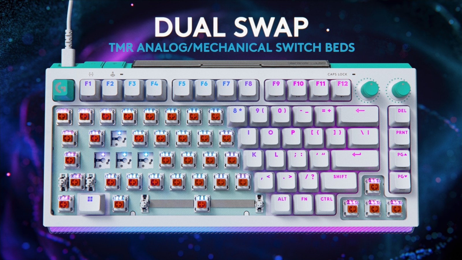 Unul dintre cele mai interesante elemente este sistemul Dual Swap, care permite combinarea switch-urilor analogice și mecanice în aceleași sloturi. Utilizatorii pot personaliza inclusiv tastele WASD pentru a obține un control mai apropiat de cel al unui controller analog. În plus, tastatura vine cu switch-uri analogice Gateron KS-20 incluse, gândite pentru cei care vor să experimenteze imediat avantajele acestui sistem.