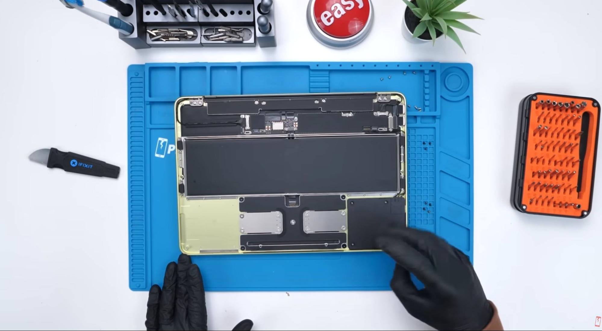 Placa de bază e compactă aici (cât vreo 2 plăcuţe de RAM pe un PC normal, exagerând puţin), iar pe ea se află CPU-ul A18 Pro, stocarea şi cei 8 GB RAM. Acestea sunt fixate pe placă, totuşi. YouTuberul spune şi că speakerele nu prea sunt bune, deşi sunt foarte mari. Ele se scot imediat, iar jack-ul audio e şi el foarte modular. Apple nu a făcut abuz de adeziv, totul e fixat cu şuruburi şi cabluri conectoare. Apple a recurs la un trackpad mecanic aici, faţă de alte produse ale sale. Cel de aici e fixat cu şuruburi Torx.