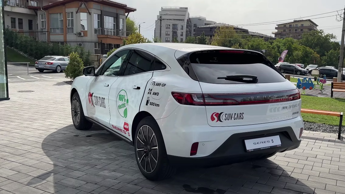 Trebuie spus că mașina vine și sub alte denumiri, ca exemplu de față, fiind numită SERES 5. În echiparea prezentată, acest automobil 100% electric are 585 cai putere, tracțiune AWD (4x4) și promite autonomie de până la 500 km. Adoptă un design tare arătos și modern, are corpuri de iluminare LED, ba chiar și semnalizări dinamice, iar un capitol la care îi suflă în ceafă lui Tesla Model Y este coeficientul aerodinamic.