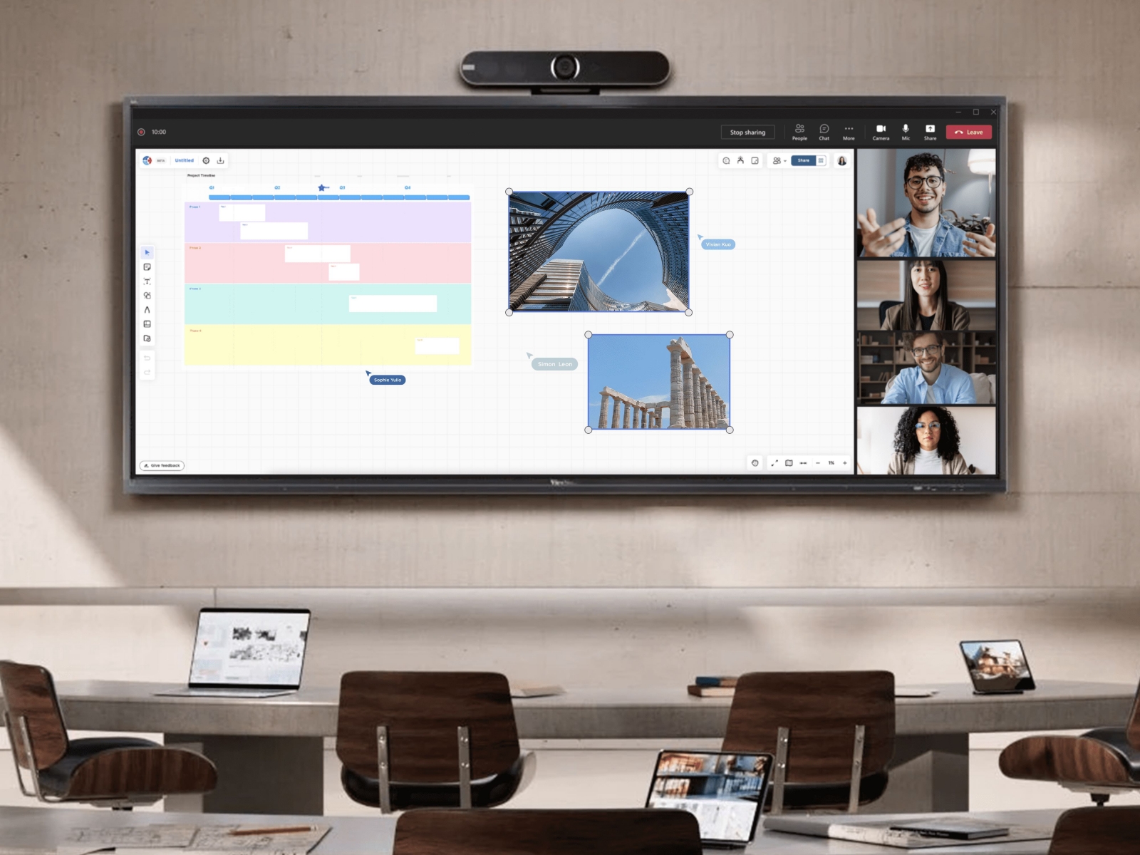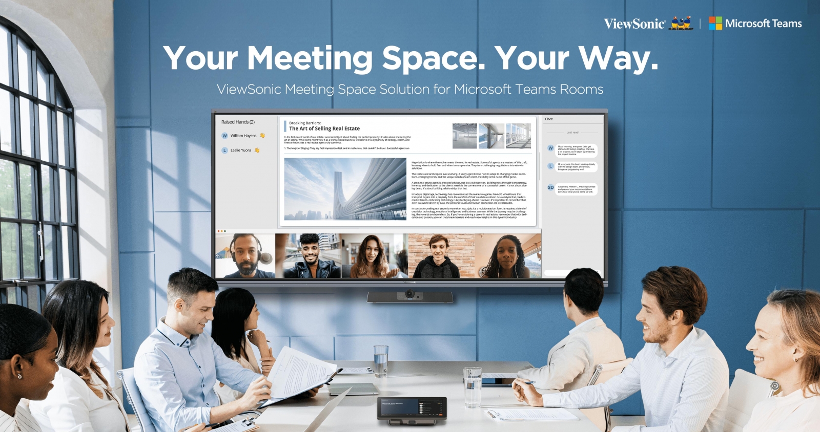 Meeting Space, compatibilă cu Microsoft Teams Rooms, include un PC cu software-ul preinstalat, o consolă tactilă și o cameră de conferință 3 în 1. Aceasta promite o integrare ușoară în diverse medii de întâlnire, datorită compatibilității cu o gamă largă de afișaje. Caracteristicile precum rezoluția de 4K și sunetul clar sunt gândite să creeze o experiență apropiată de întâlnirile față în față, iar tehnologia avansată de detectare a vocii îmbunătățește calitatea interacțiunii.