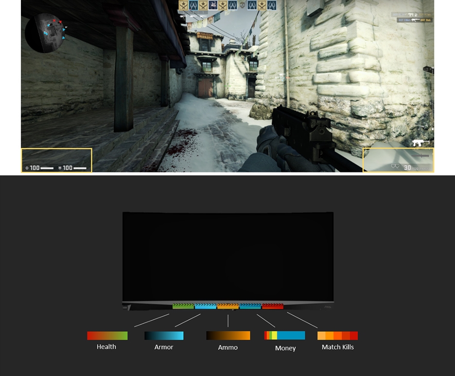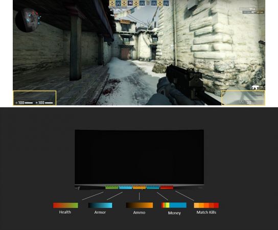 Avem exemplu titlul CS:GO. Indicatoarele LED amplasate sub centrul ecranului afișează astfel sănătatea, armura, muniția, banii și inamicii uciși. Sunt multe programe și jocuri care utilizează această funcție deja, pe listă aflându-se Discord, League of Legends, dar și Minecraft și alte titluri.